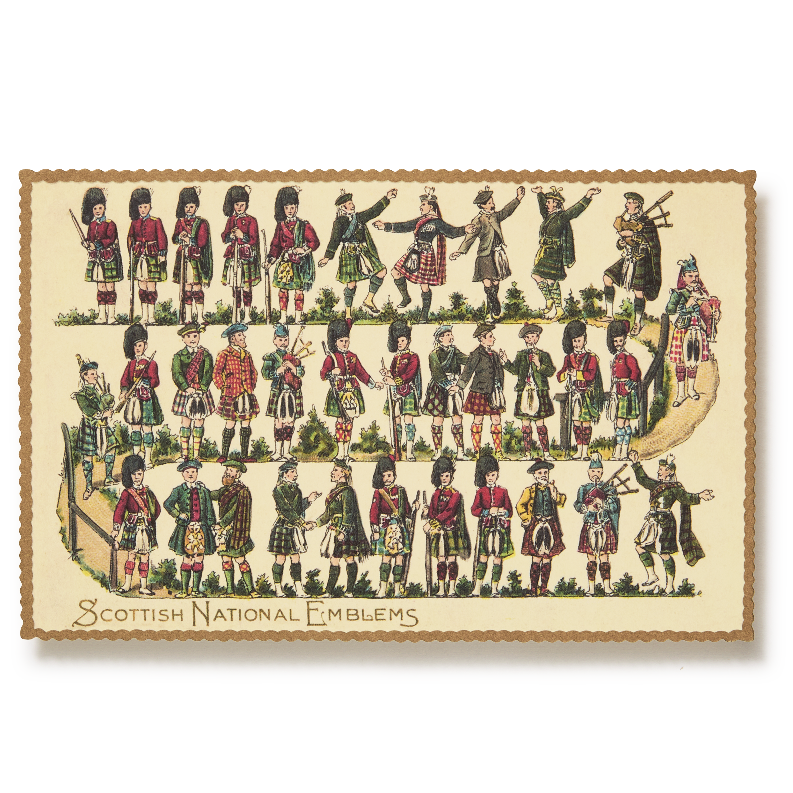 This vintage postcard design celebrates Scotland the way early 20th-century printers loved best: through tartan, folklore and a generous sprinkle of good luck. This design gathers together miniature sprigs of white heather, the traditional Scottish emblem of luck, each tied with its clan’s distinctive tartan. White heather itself has a long folklore pedigree: said to grow only where fairies have danced, and carried by Highlanders into battle as a charm against misfortune. Taken from the Choosing Keeping extensive collection of ephemera, we have worked carefully to match the distinctive colour palette and embossed texture of the originals - perfect for sending as a small note, framing as part of a gallery wall, or accompanying a gift.