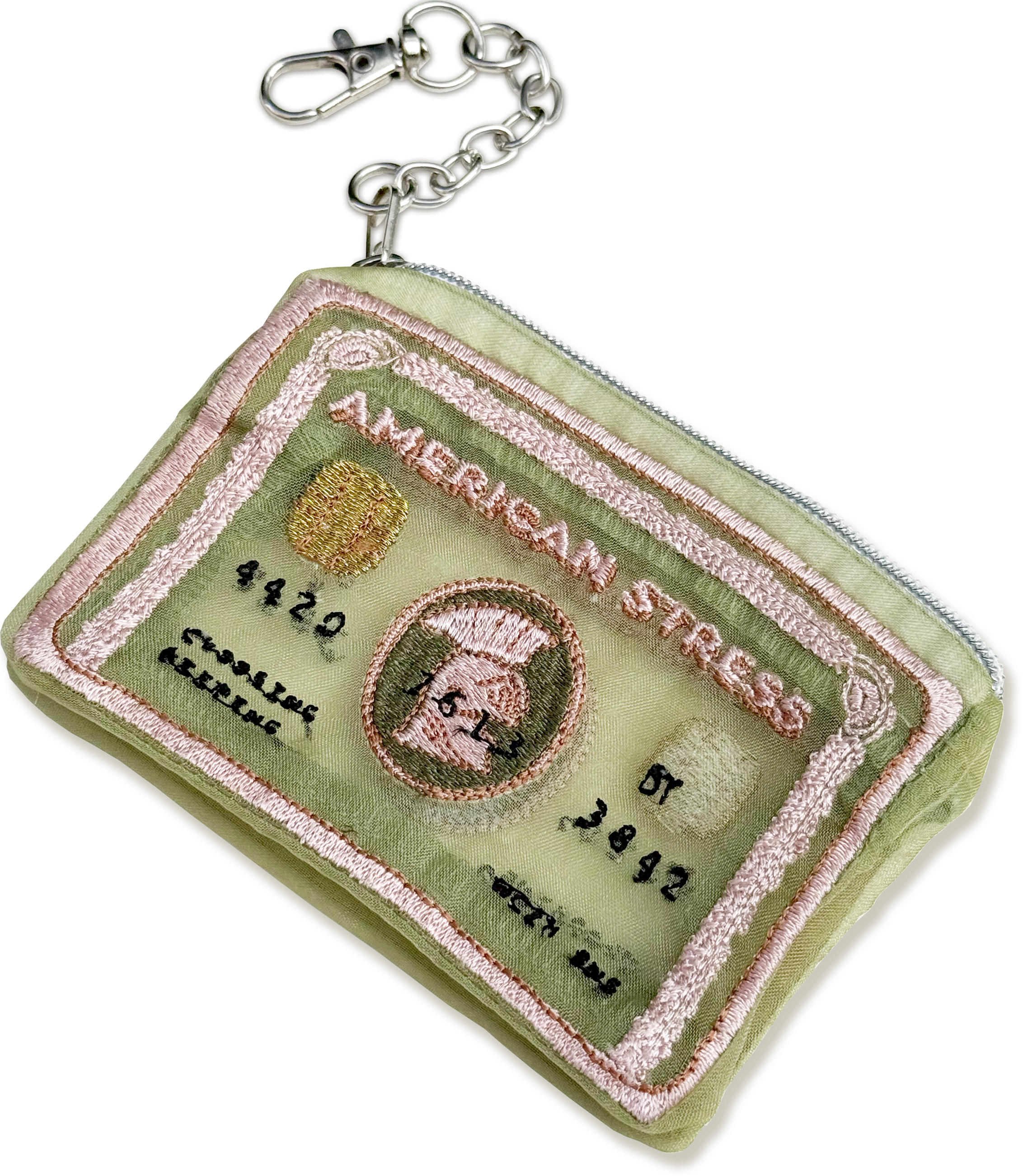 Store credit cards and loose change in this funny little embroidered pouch - Brigitte Tanaka's playful re-imagination of the classic American credit card made exclusively for Choosing Keeping. Fitted with a handy metal clasp for safekeeping