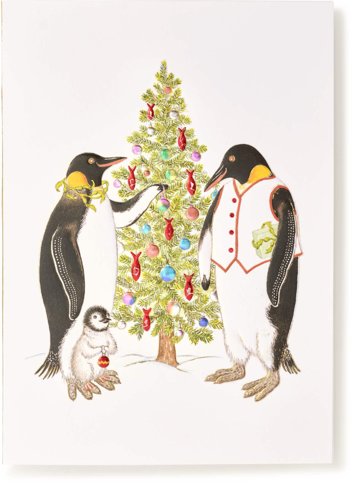 The sweetest of families in this Christmas tree and fish ornaments scene. Stay away if you're adverse to all things cute and cuddly- but maybe you will be won over by the expert engraved printing, extensive use of foils and charming illustration work?