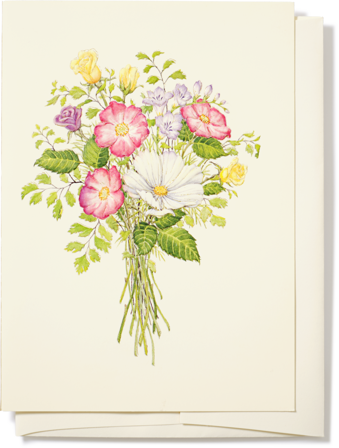 A clear winner of greetings: Birthday, Mother's Day, anniversary, there is no occasion this glorious fresh bouquet of flowers can't cover. It's not only playful but also elegant and a no-fail choice for both heartfelt and more formal occasions. On the printing front, excellence is on show. Lithograph printed, foiled, foiled again, and embossed all at once, not many can print like this and we are lucky to be able to offer this card thanks to dedicated craftspeople maintaining such skills today.