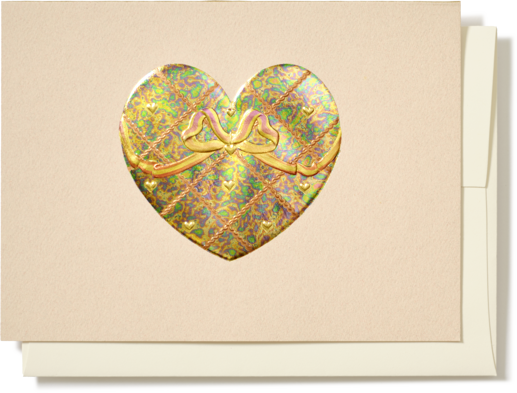 Unapologetically 80s and selected for its dead-stock foiling, a heart of gold set upon a soft peachy background is channelling my secret heart lock diary à la Molly Ringwald in Sweet Sixteen. Style not withstanding, undeniable are the now rare expert skills used to make it: lithograph printed, foiled, foiled again, and embossed all at once, there are not many who can print like this.