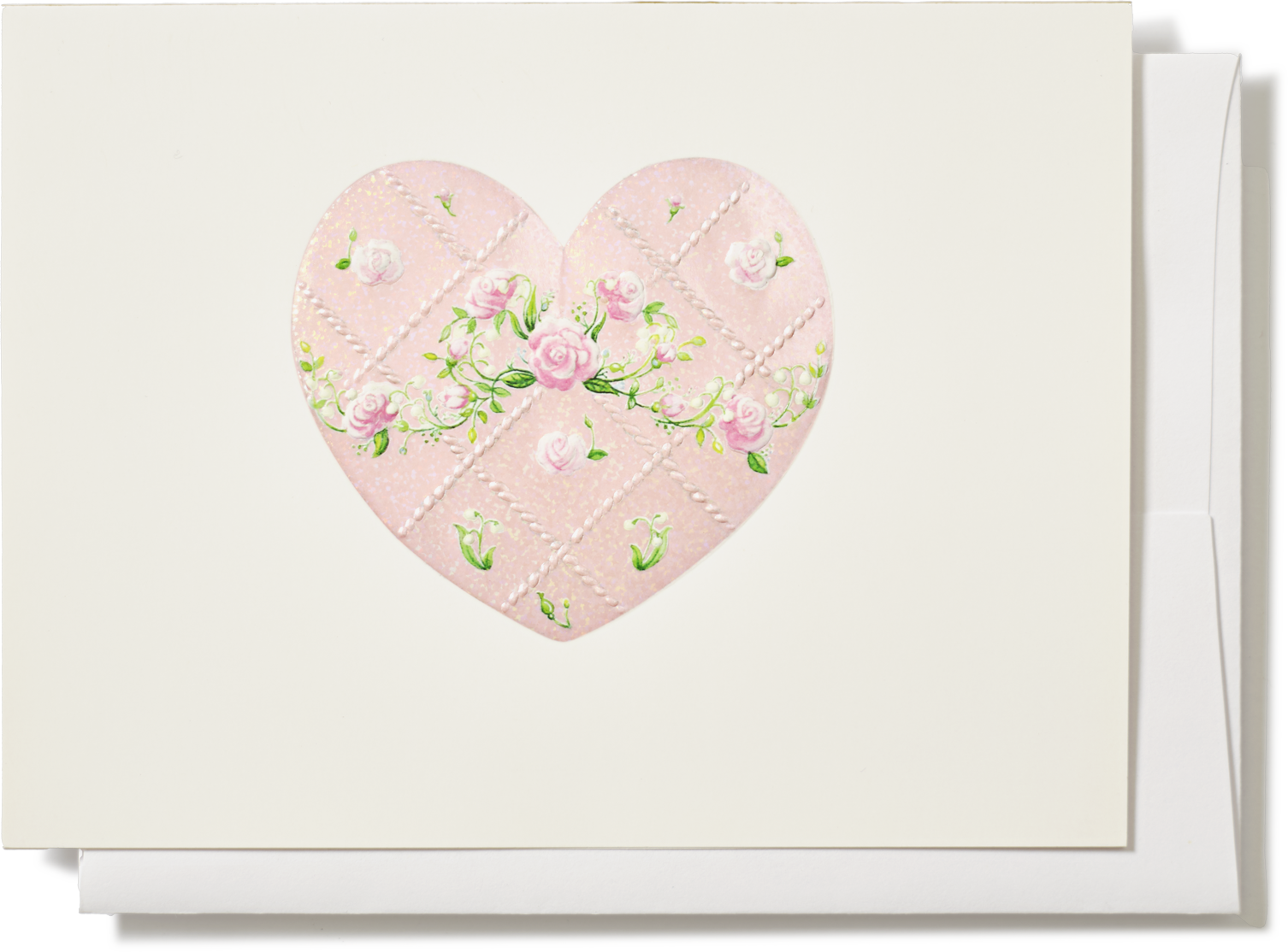 Engraved Quilted Pink Heart with Roses Greeting Card