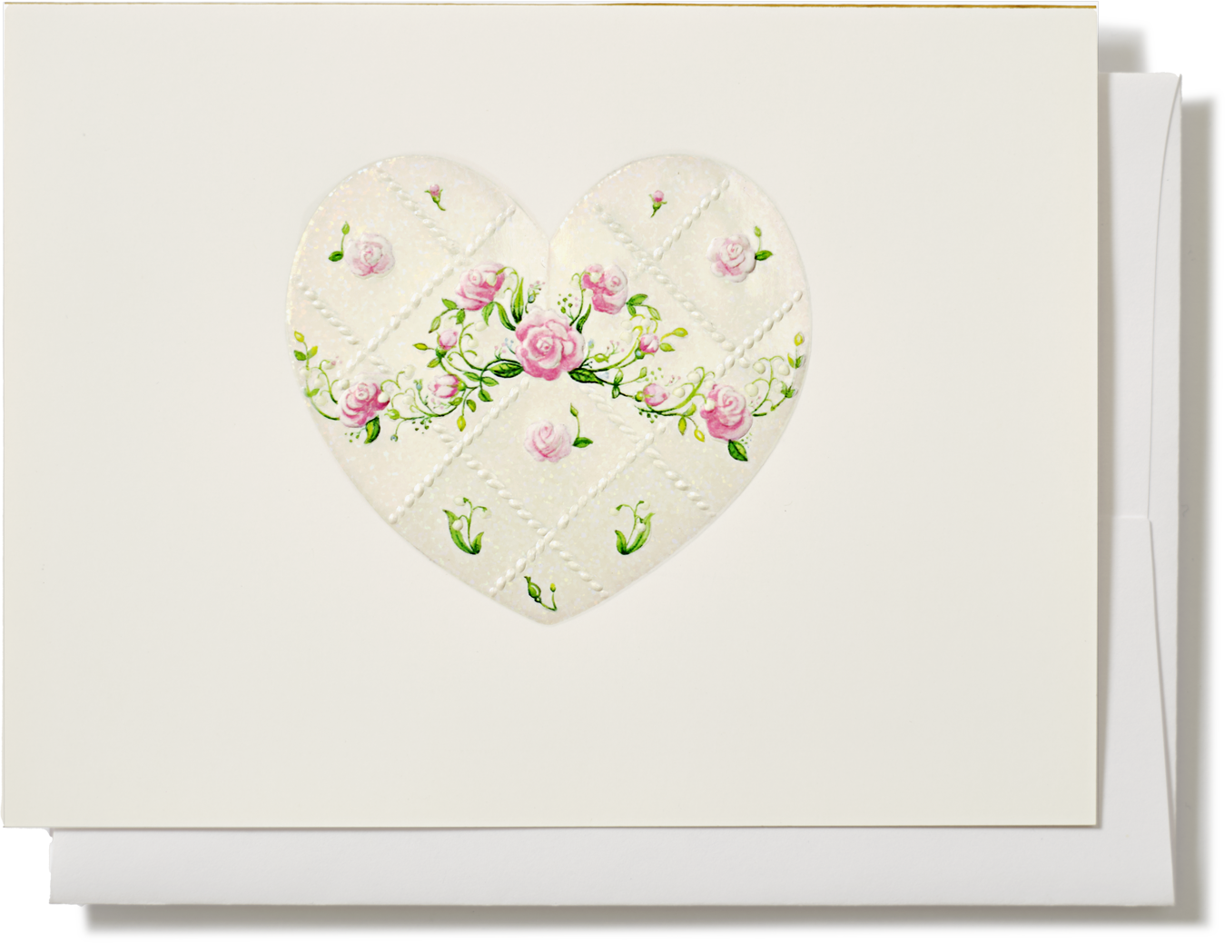 Unapologetically 90s, it's channelling Polly Pocket circa 1992. If you are questioning the style of this greeting, what is undeniable is are the now rare expert skills used to make it: lithograph printed, foiled, foiled again, and embossed all at once, there are not many who can print like this. Paired in the right way, this card can make the perfect impression of love, roses, bows, hearts and more.