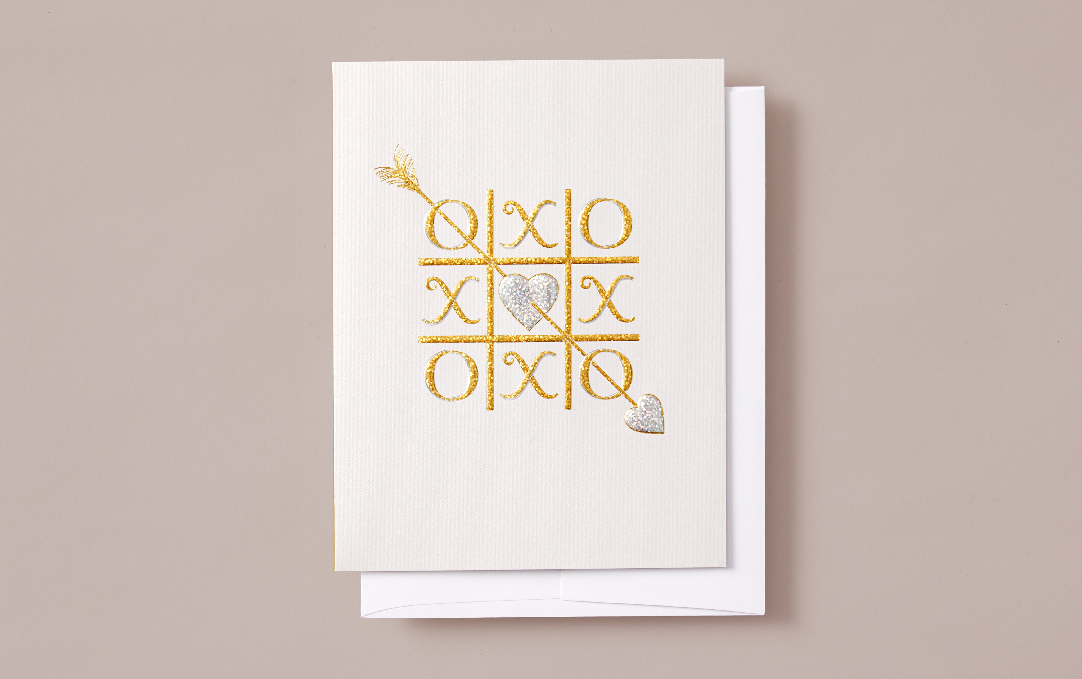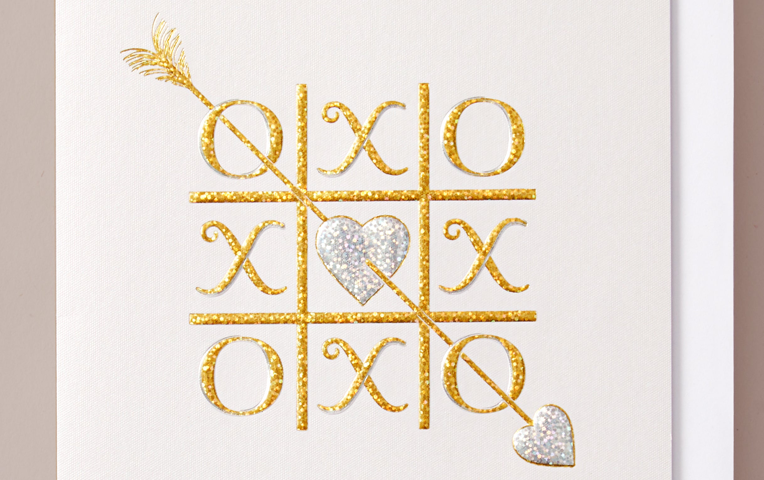 Hand engraved on pearlescent white paper with vibrant foiling and a deep embossed feel. Also available in red here.