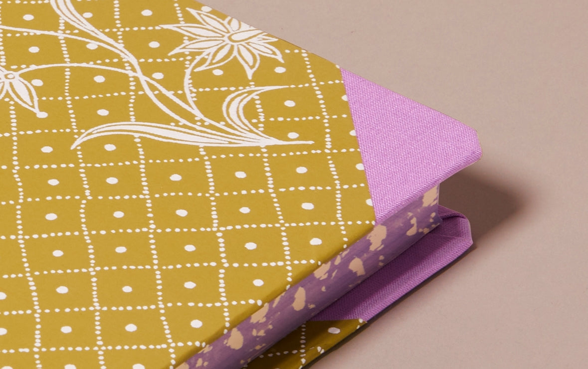 Not content with using the many wrapping and decorative papers currently produced in the world, we have borrowed from the field of Interiors, so tempted by the beautiful hand block printed wallpapers of the past, our signature composition notebooks here featuring antique wallpapers dated from 1920 to 1970. Back then, before digital printing each paper had to be block printed and so you may even find your notebook features the cut marks and colour charts both to facilitate application for the decorator or as an aid for the printer to match the colour between rolls.