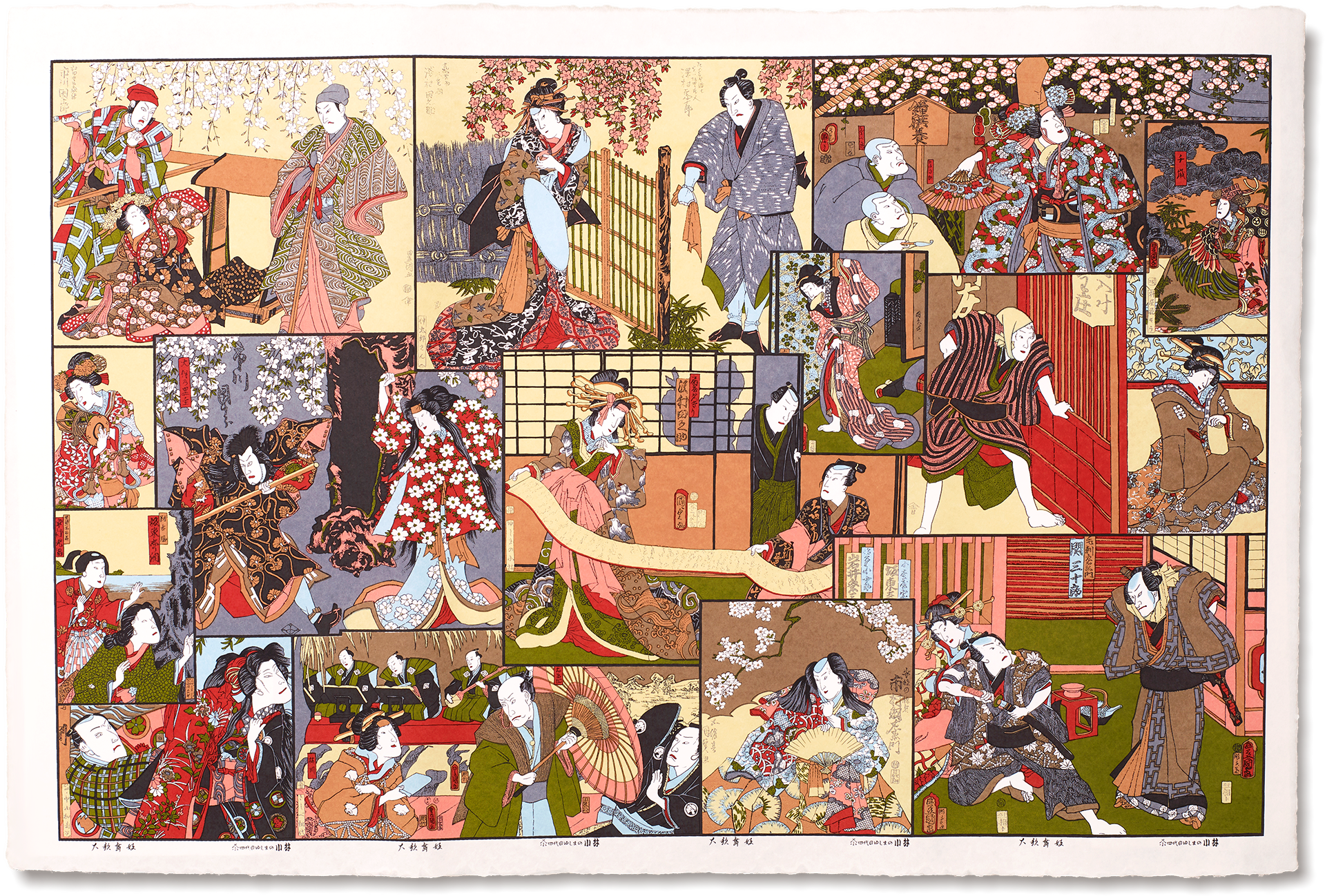 Full-Panel Chiyogami Silk Screen Print, Heian Courts