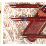 Since 1953, the range has included a fountain pen, a rollerball and a chunky 3.2mm clutch pencil. They can be mixed and matched as a duo of writing implements and held together in an attractive leather pouch, just as they were traditionally advertised back in the day.