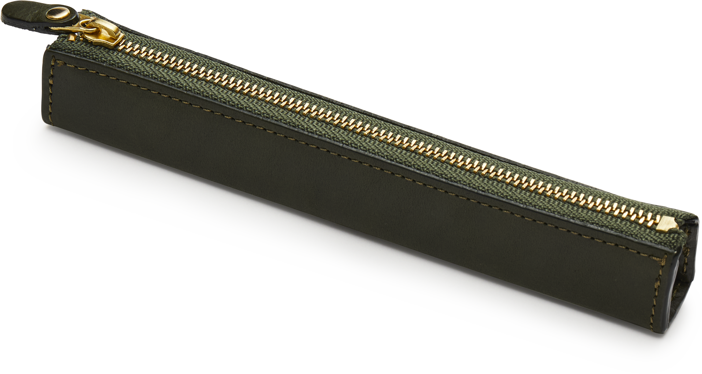 This slim pen case is the ultimate compact protection for two to three writing instruments. Crafted from stiff leather with a matching zip, its structured triangular shape showcases the best of Japanese minimalism.