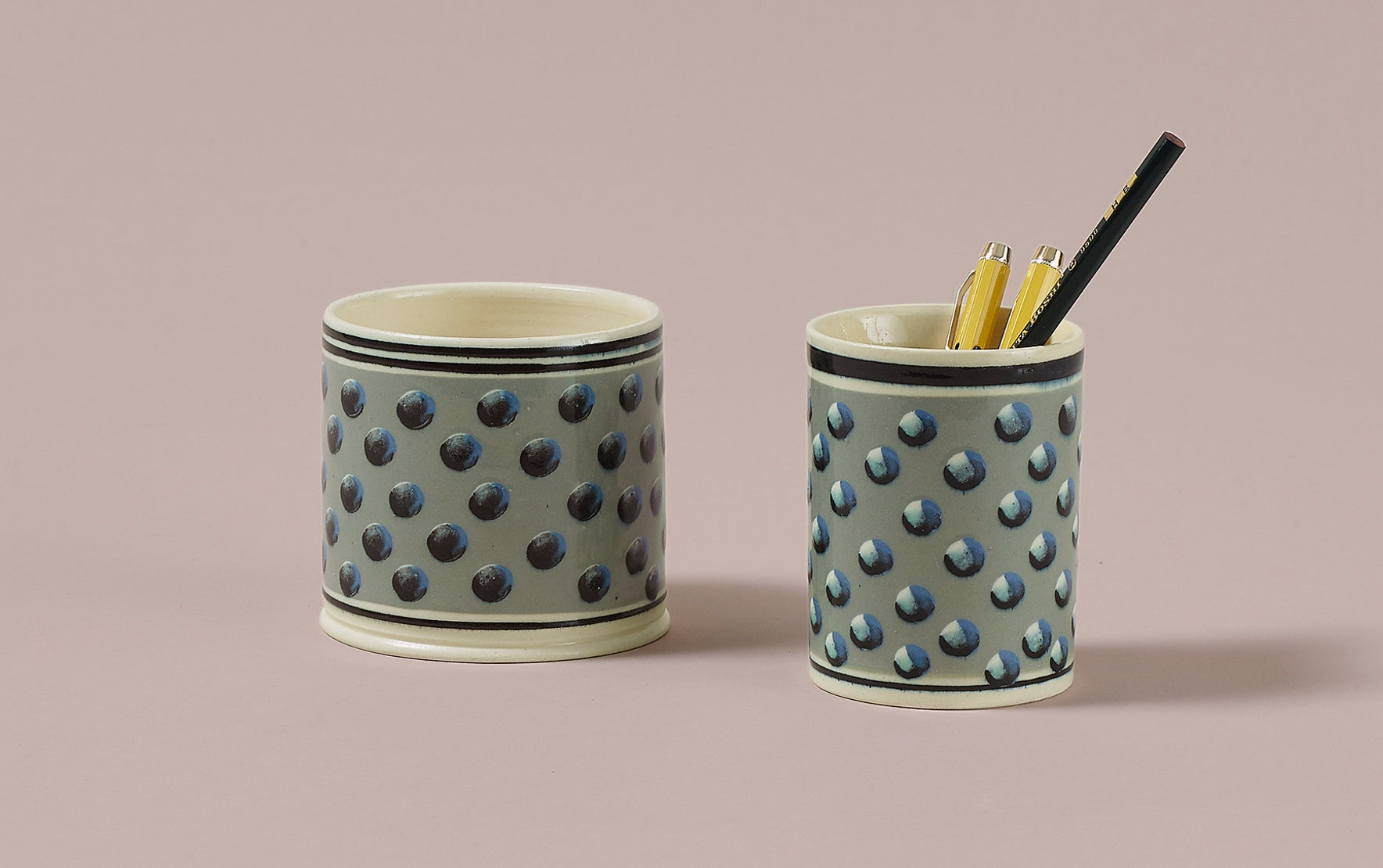 Duck Egg Mochaware Ceramic Pen Pot, 'Cat Eye'