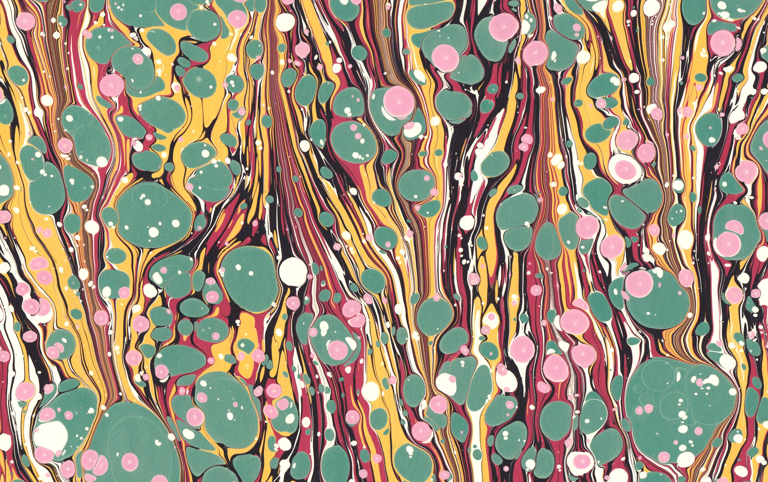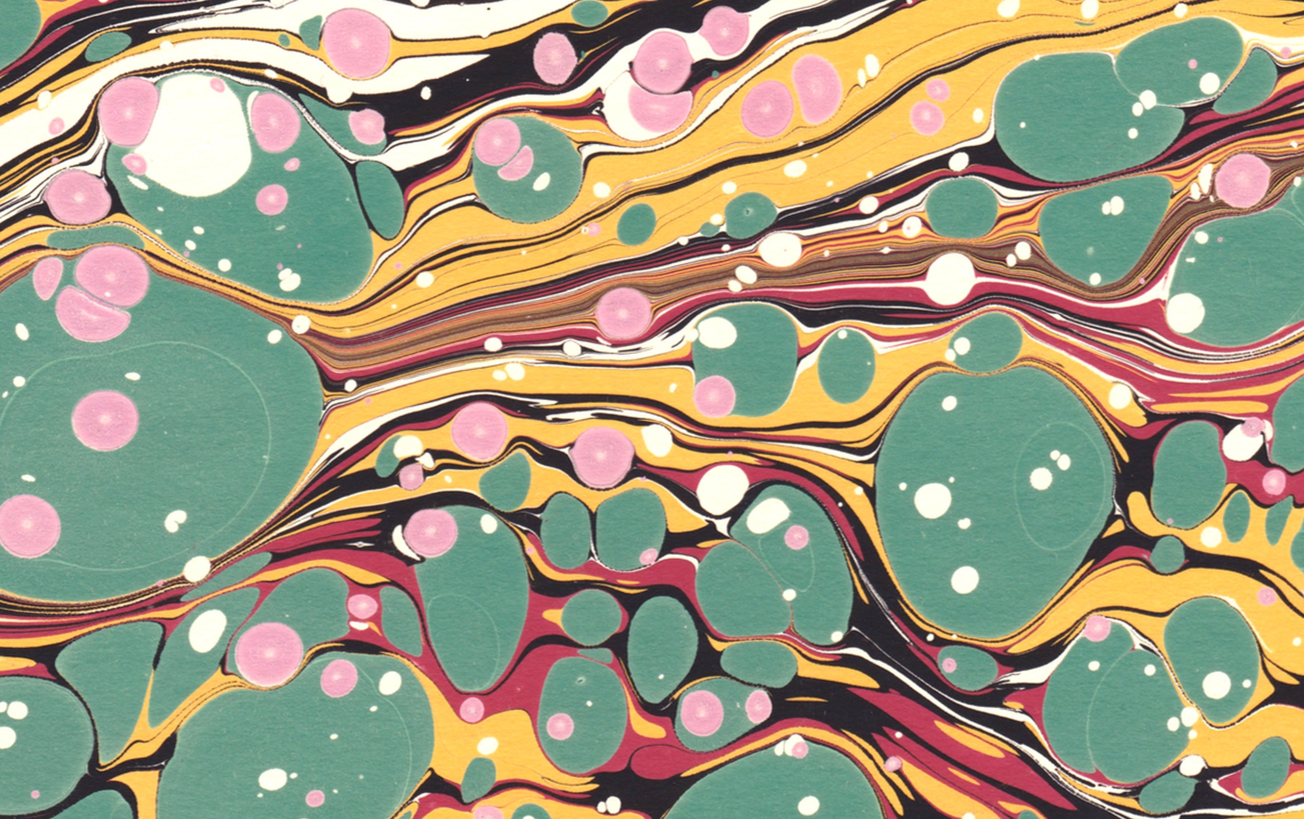 Marbling, which first appeared in Asia around the twelfth century and travelled to Europe through Persia and Turkey, only became prolific in Britain in the mid nineteenth century.
