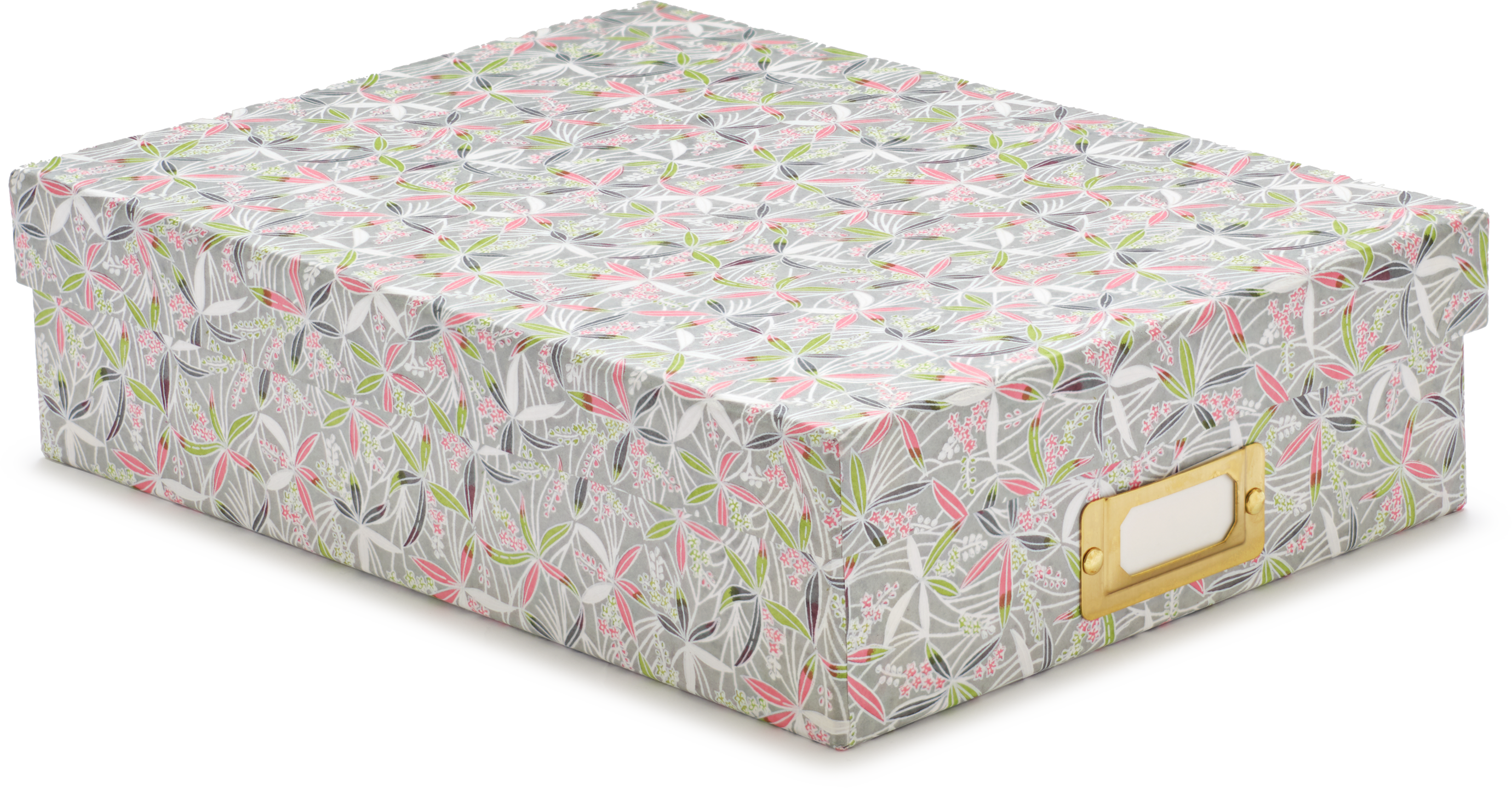 Handmade archival box, with Japanese paper motifs, lined inside (with creme paper) and using hand silk screen paper to cover. There is also a brass label holder on each box to make note of its contents.
