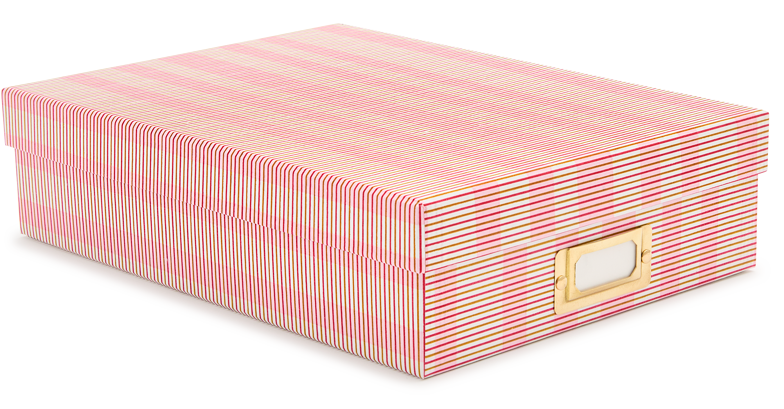 Handmade archival box, with Japanese paper motifs, lined inside (with creme paper) and using hand silk screen paper to cover. There is also a brass label holder on each box to make note of its contents.