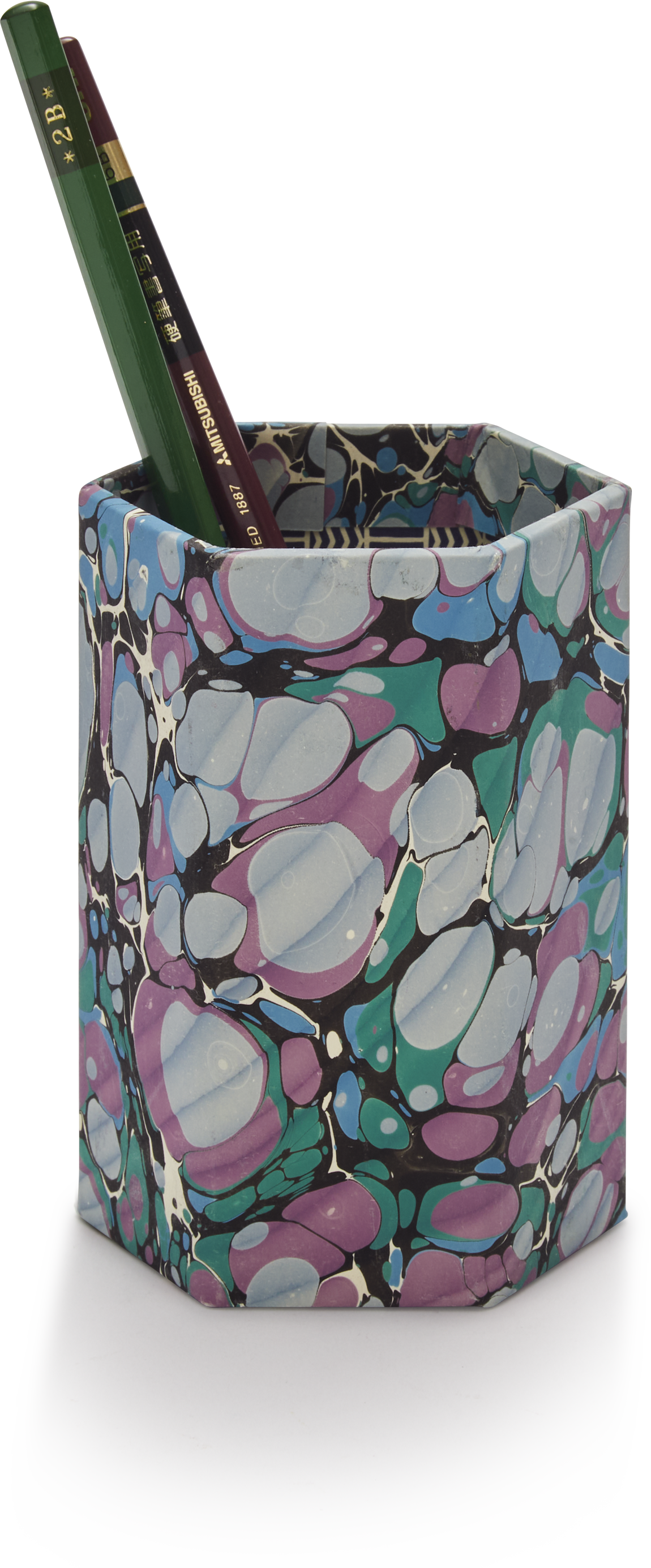 Hand marbled papered pen pots, each one completely unique. It's a lovely practical way to enjoy the beauty of paper marbling.