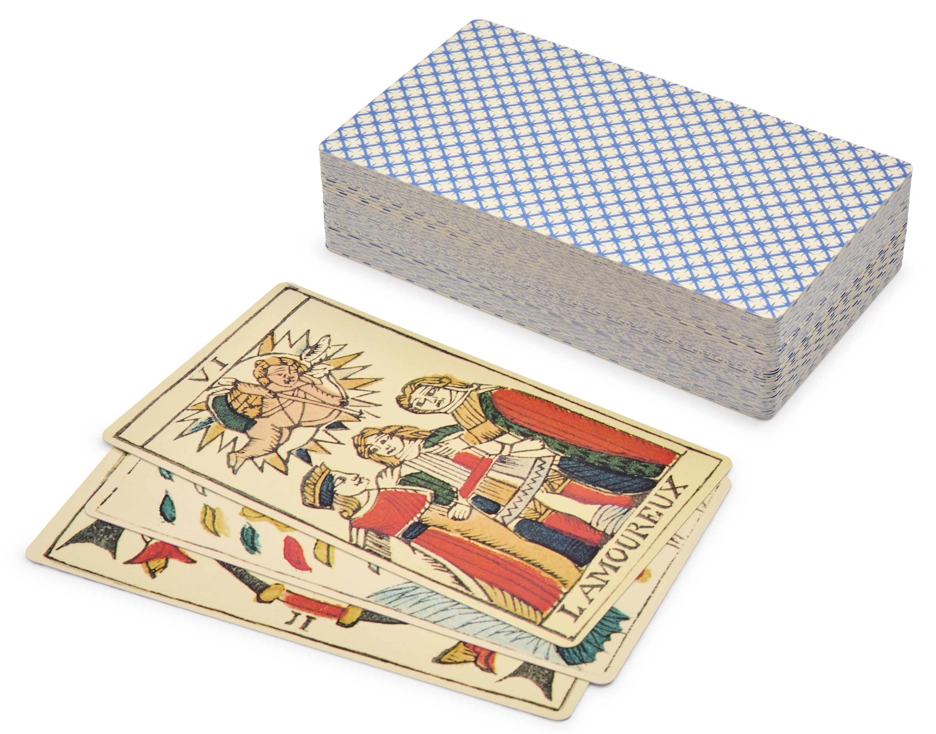 The Tarot de Marseille traces its origins far back in time. Although “Tarotists” generally agree that ancient Egypt already knew about divinatory card games, the very first tarot cards originated in northern Italy, early in the 15th Century (1420-1440). The earliest existing cards are lavishly hand-painted decks from the courts of the nobility of that time. The predecessors of the Tarot de Marseille would then have been introduced into southern France, taking the name Tarot de Marseille around 1856 as a collective name for the related designs that were being made in the city of Marseille.