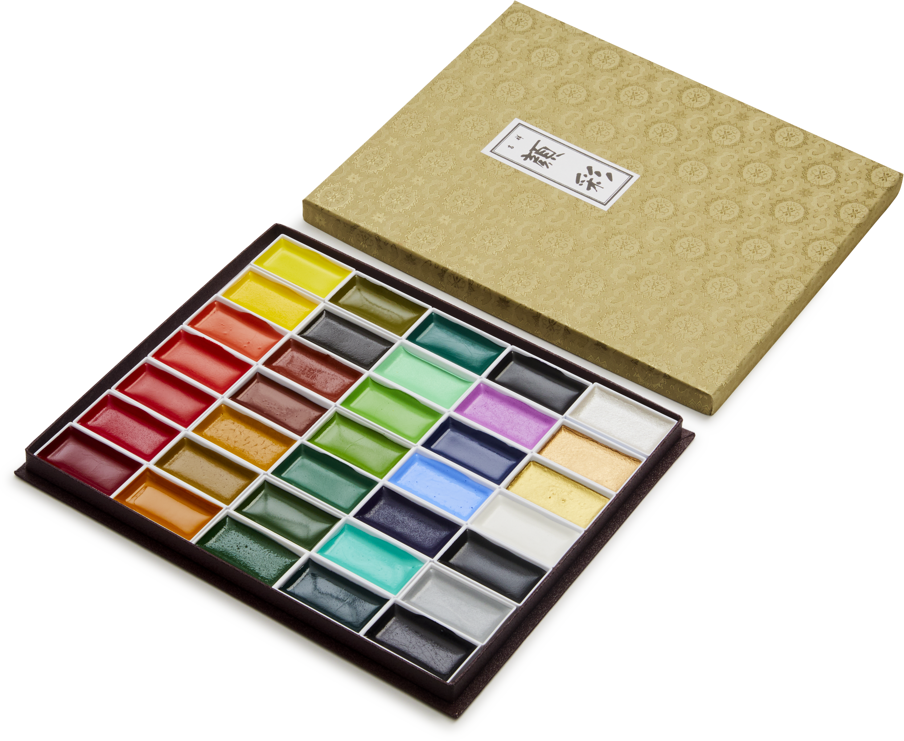This selection of 35 colours includes metallic shades of gold and copper. Presented in a gold Japanese fabric-bound presentation box.