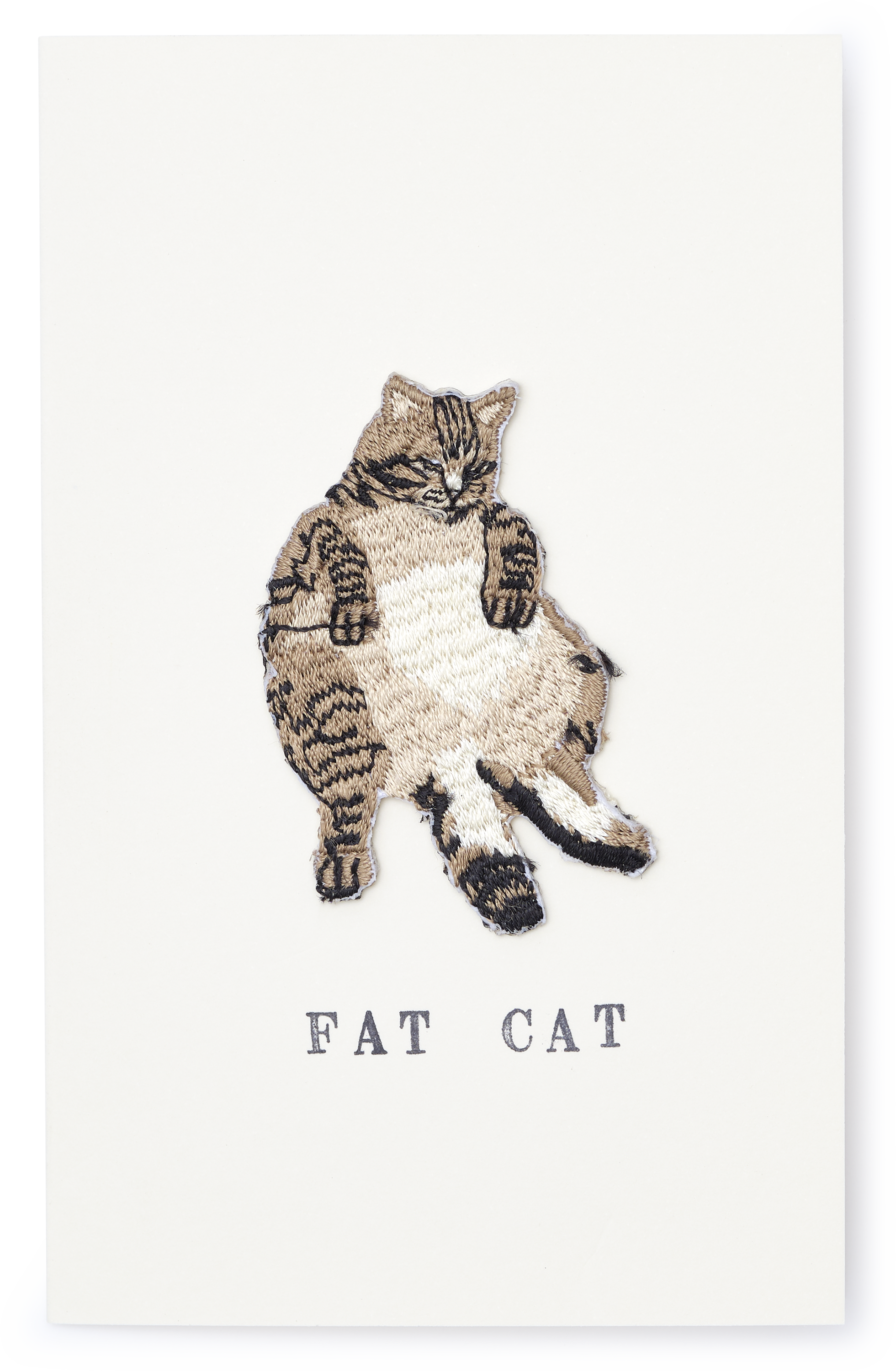 Japanese Embroidered Patch Greeting Card, Fat Cat