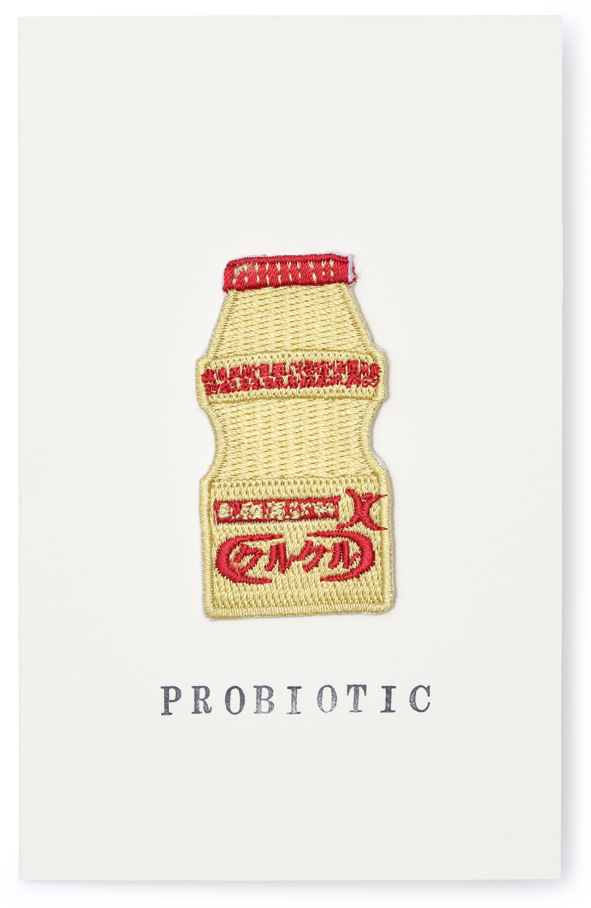 Japanese Embroidered Patch Greeting Card, Probiotic Drink