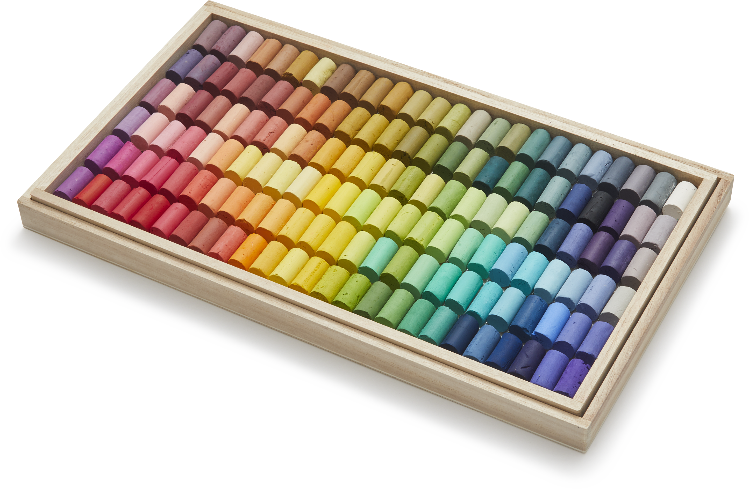 Crown Chemical Company is notable for being the first and sole producer of soft pastels in Japan, thus bringing to their product a distinctively Japanese flavour suited to painting the landscape of Kyoto. If you have been using commercial, mass manufactured pastels before - which contain chalks and other dusty fillers - this medium is incomparable. They are carefully handmade, in small batches, with the aim of giving each colour the greatest clarity and brightness, allowing the artist to explore the pigments' full character.