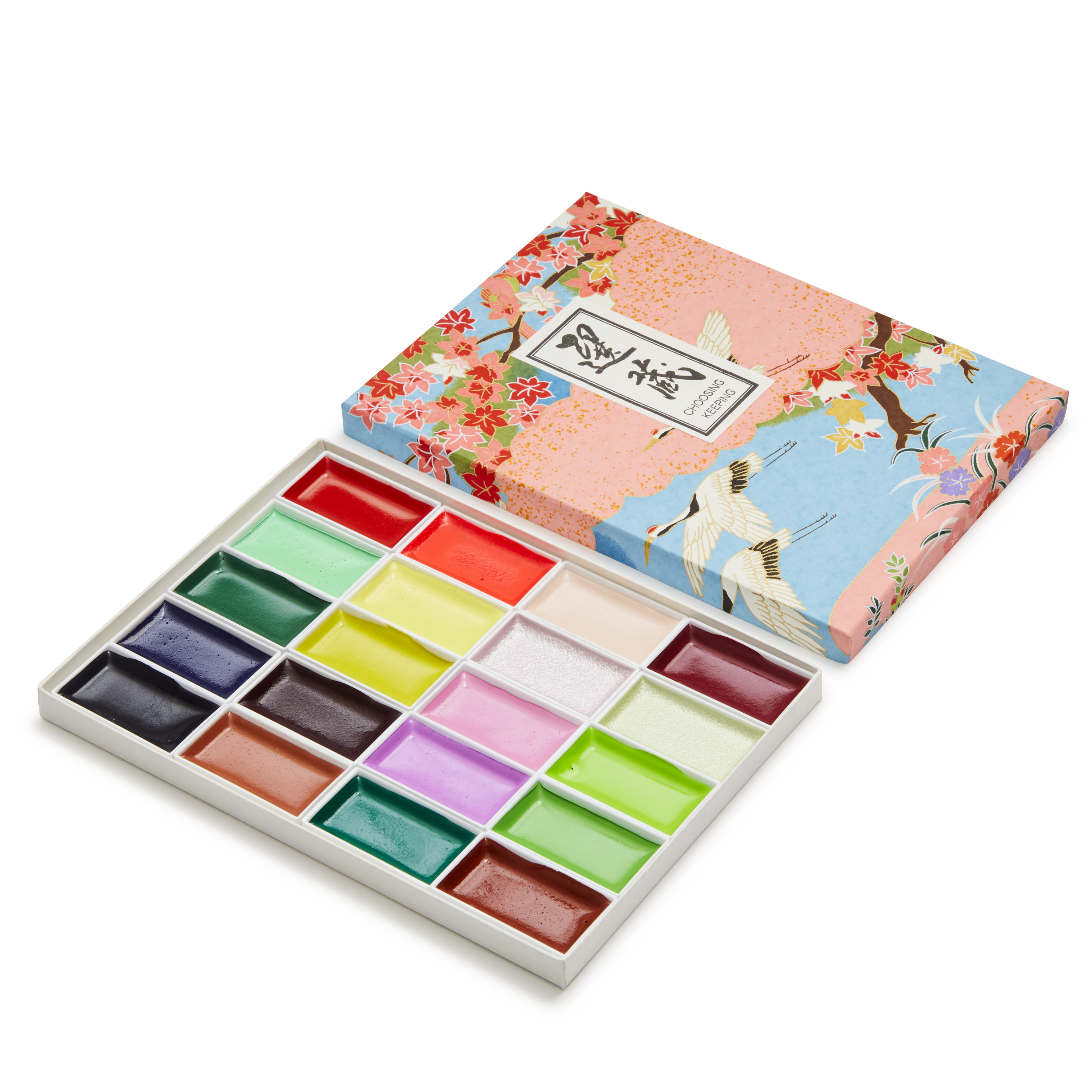 These Japanese artist watercolours are made from a blend of natural minerals, plant gums, and approved artist pigments to produce rich, vibrant colour that’s safe and non-toxic. They contain no heavy metals such as lead or cadmium and are classed as non-hazardous under UK safety regulations. The paints are odourless, water-soluble, and suitable for adult artistic use only. Avoid eating, drinking, or smoking while painting, and wash hands after use. If paint gets in your eyes, rinse well with clean water; if swallowed, rinse your mouth and seek advice if unwell. Store in a cool, dry place away from sunlight and keep out of reach of children and pets. Allow rinse water to settle before disposal and throw away the dried residue responsibly, rather than pouring coloured water straight down the drain. These paints are safe to handle, transport, and use when used as intended for art and creative work.