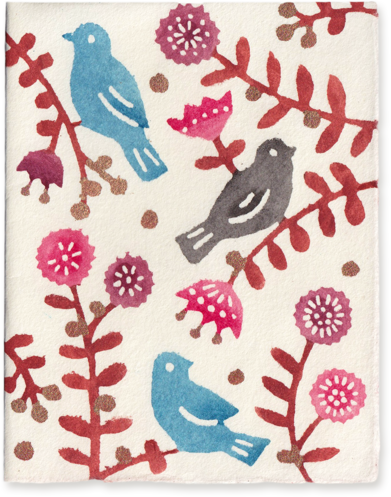 Katazome Greeting Card, Birds