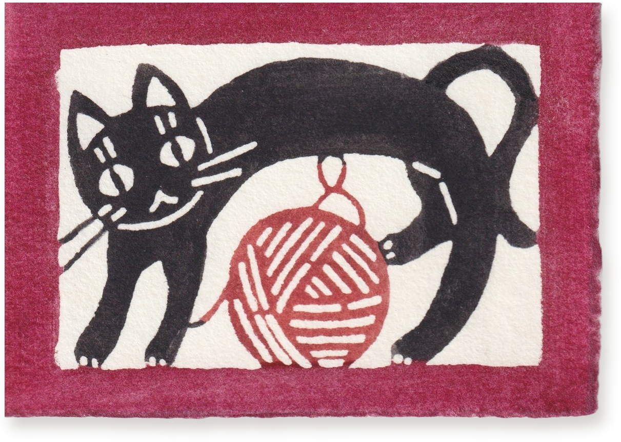 Katazome Mini Greeting Card, Black Cat and Knitting Yarn