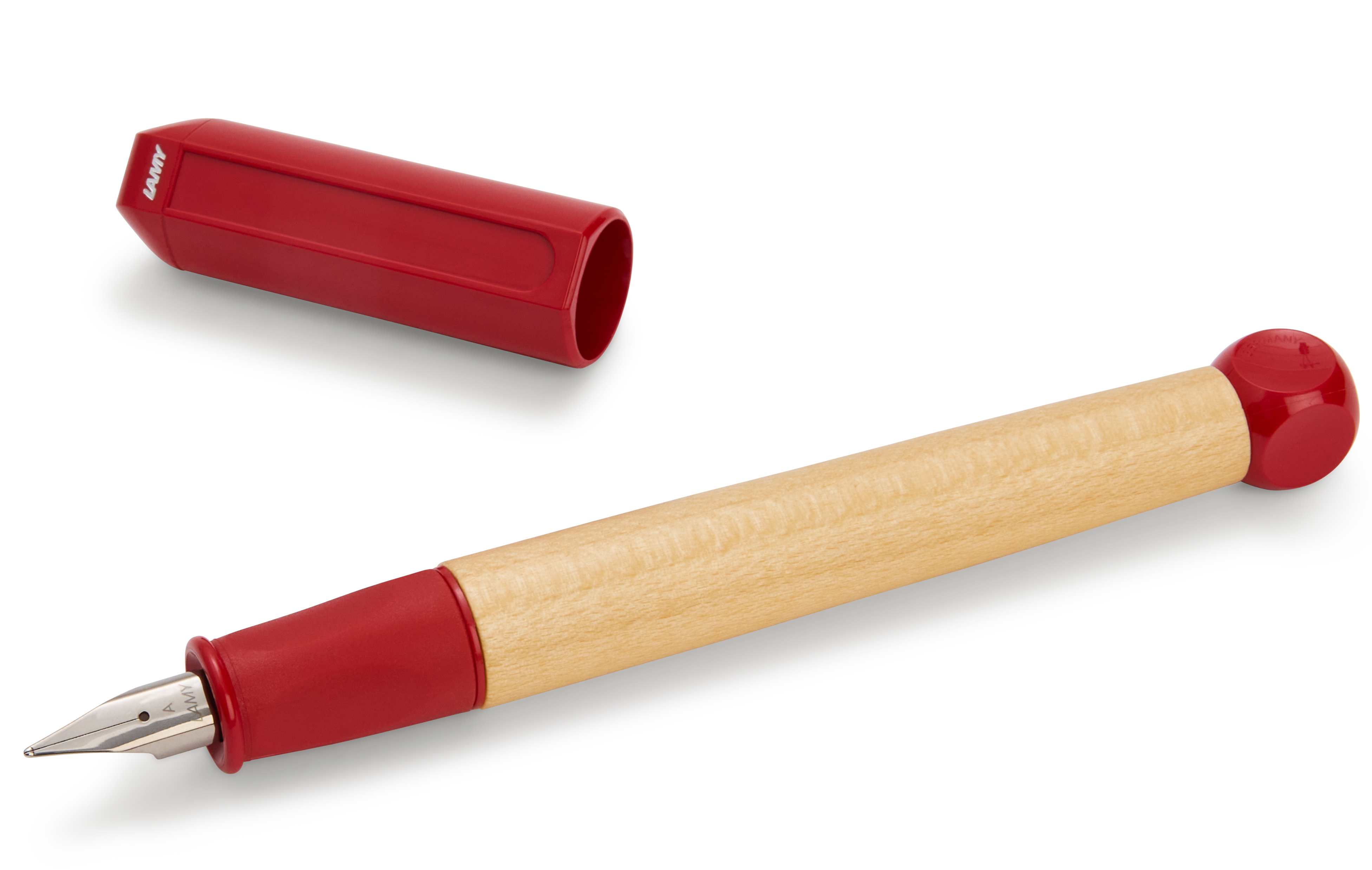 The Lamy ABC, designed in 1987 under the supervision of experienced German teachers, should appeal to beginner fountain pen users thanks to its comfortable rubber grip and lightweight body. Other unique features include bright lego-like colours and a natural maple wood barrel for a fun Piet-Mondrian-like look - suitable for kids and grown-ups alike.