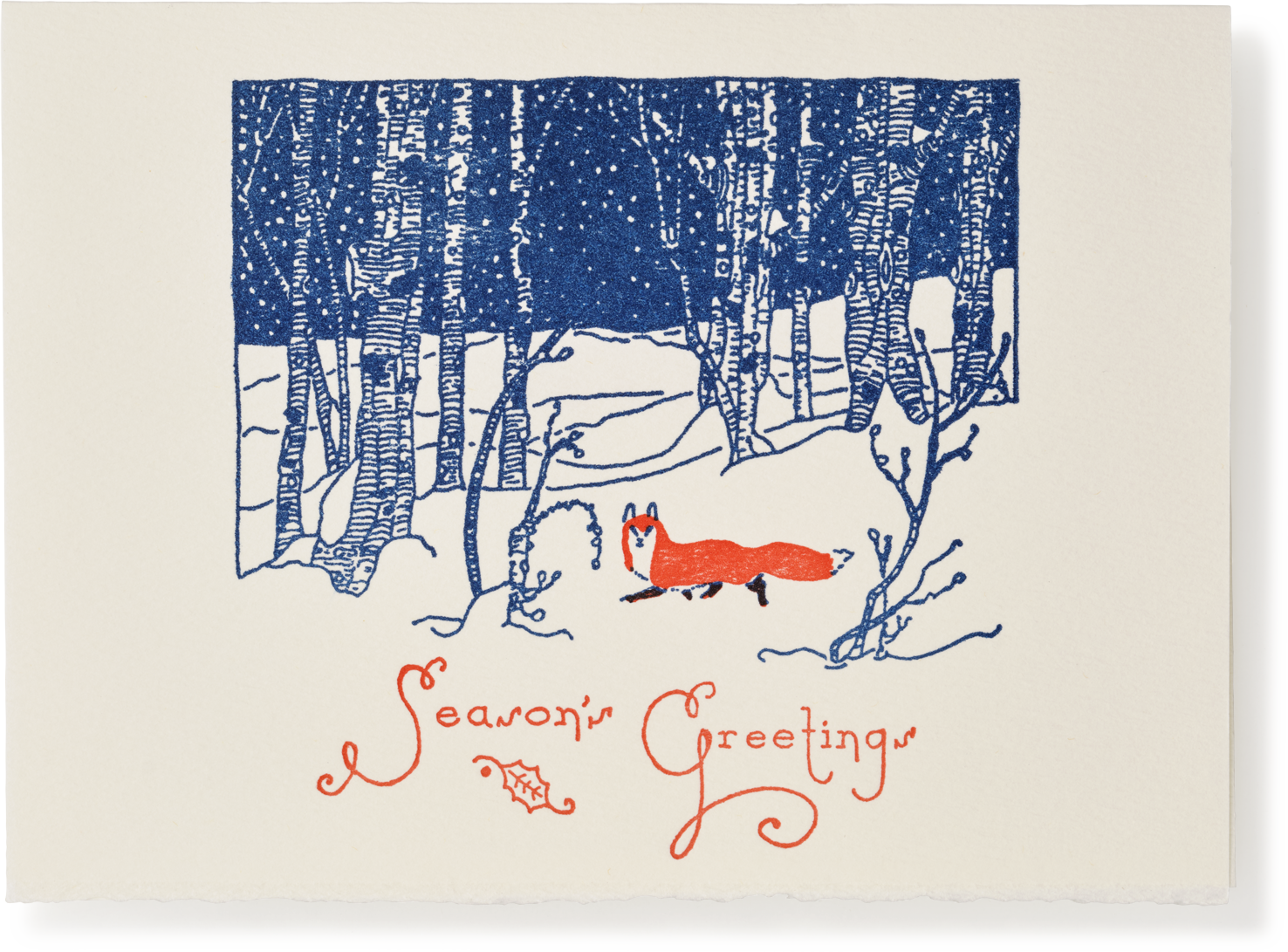 Letterpress Christmas Greeting Card, Fox in the Snow