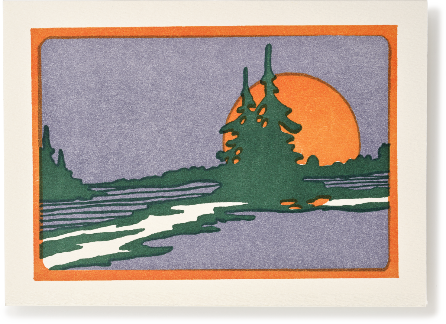 A tranquil nature scene for any occasion, hand-printed on an antique printing press.