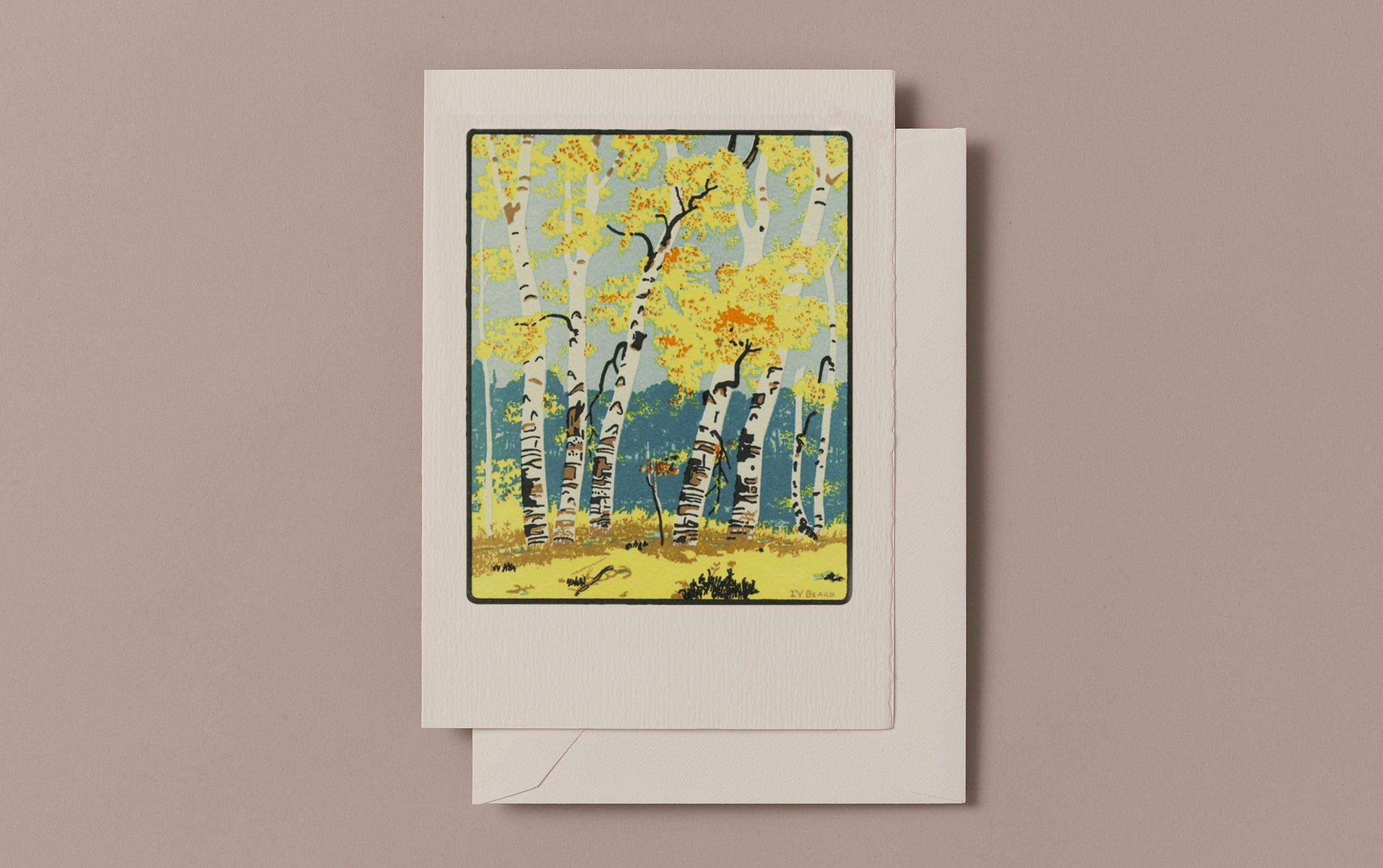 A peaceful depiction of forest of silver birch trees for an open-ended interpretation. This card was hand-printed on a traditional printing press and can suit multiple occasions, including marriage or birth as the silver birch symbolises new beginnings and the promise of what's to come.
