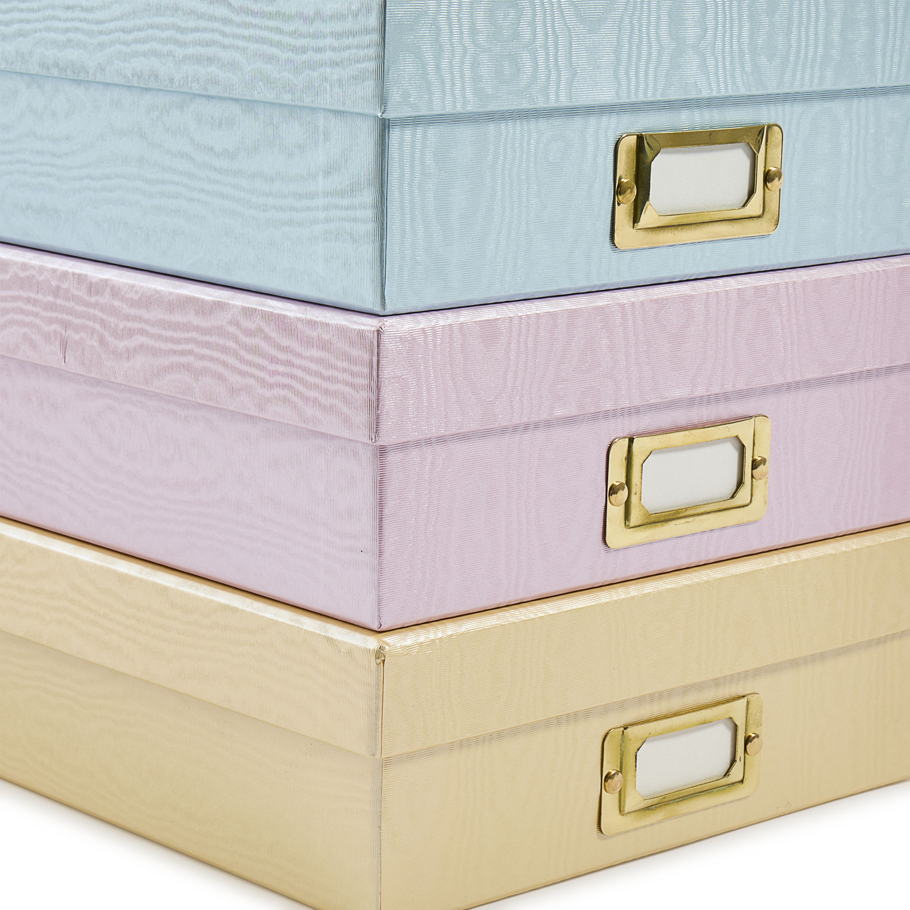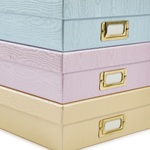 We are always on the hunt for specialty papers and must admit a particular penchant for all things moiré, a pattern characterised by a rippled water effect. This effect was mostly seen on silk garments from the 17th century onwards and thus confers that connection to fashion, to women’s luxurious dresses and general French sophistication. Now you too can bring a bit of Rococo to your office by way of this pretty box.