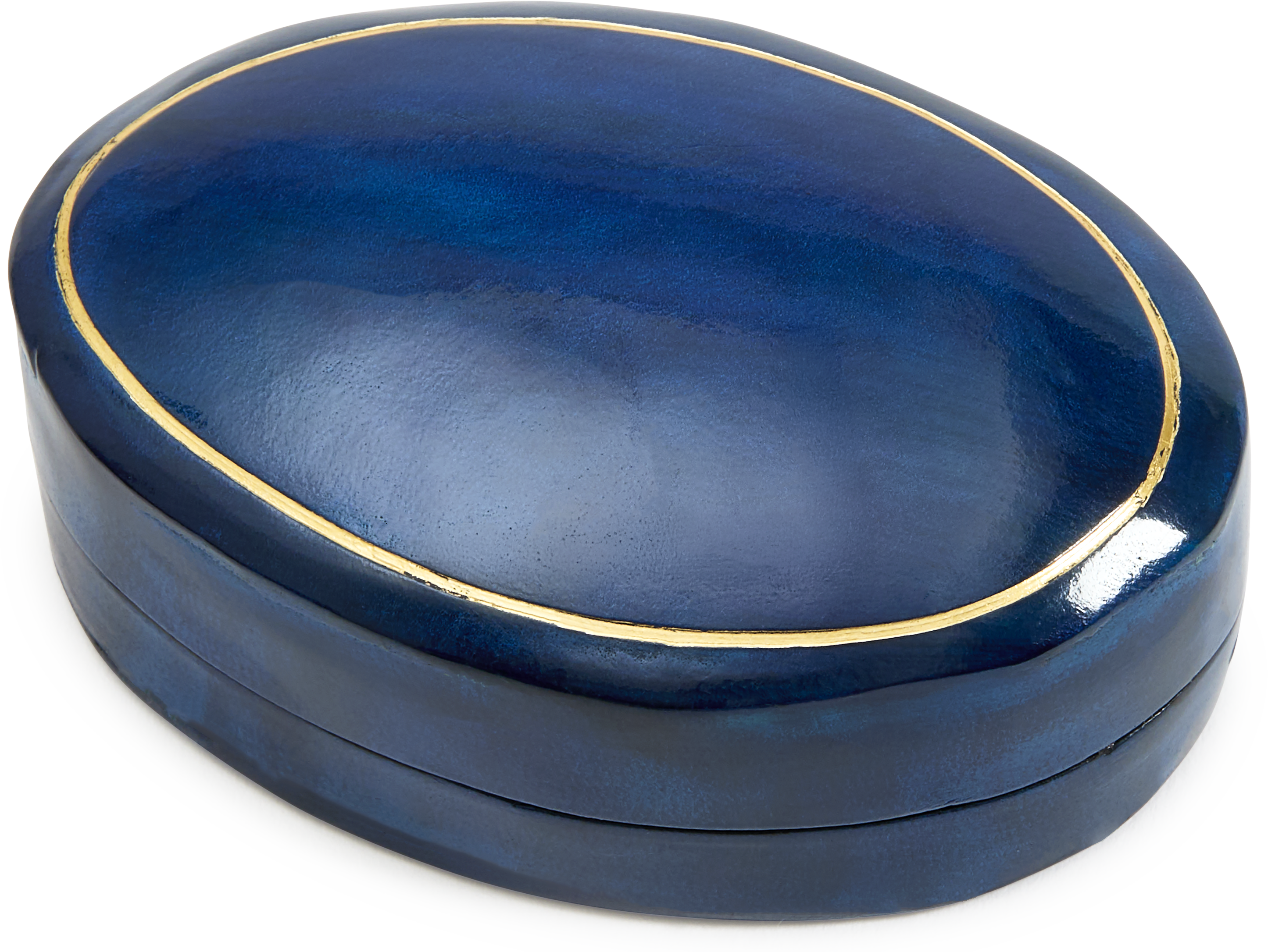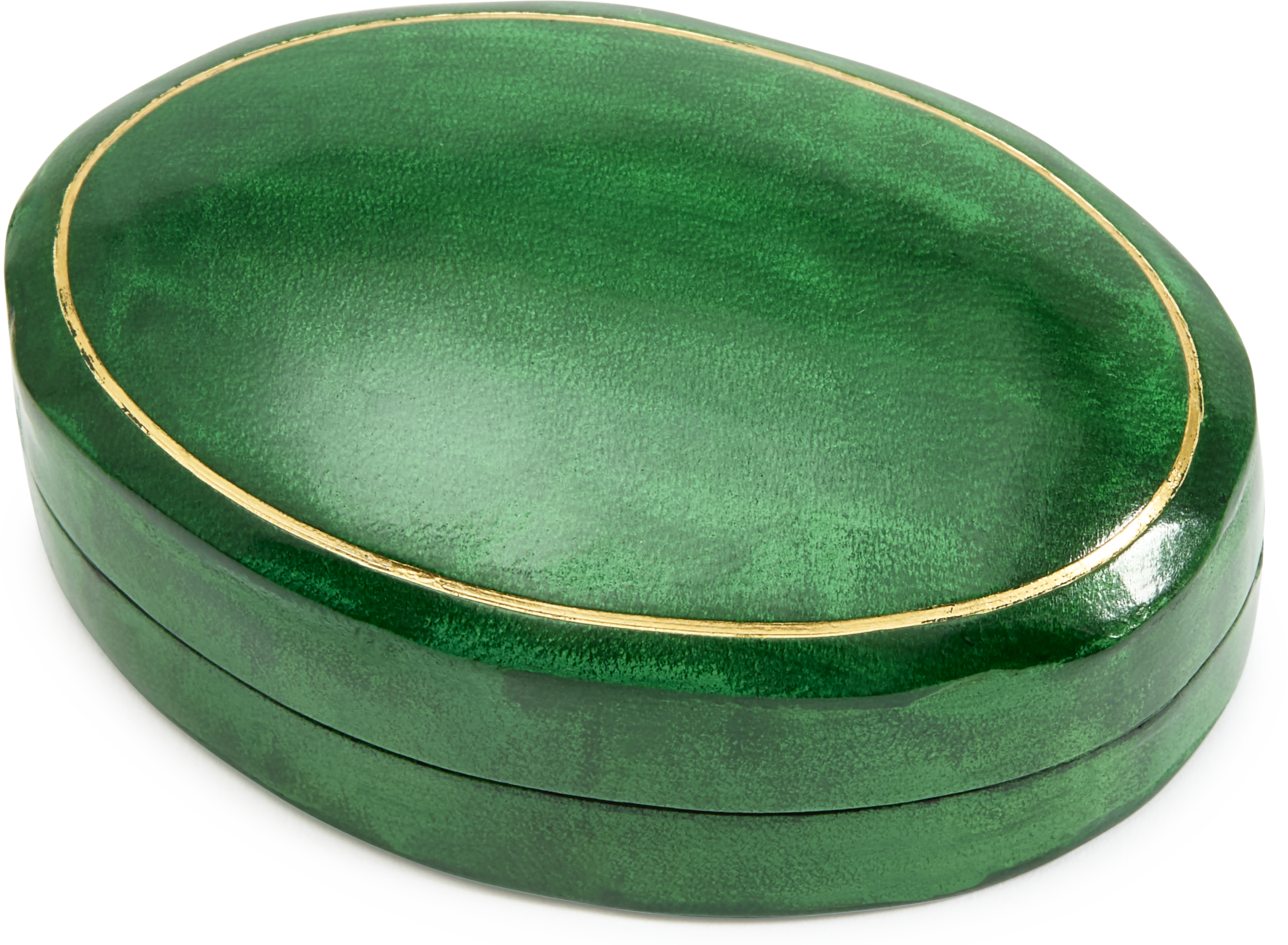 Enjoy these glossy Italian-made calf leather oval trinket boxes in many colours.