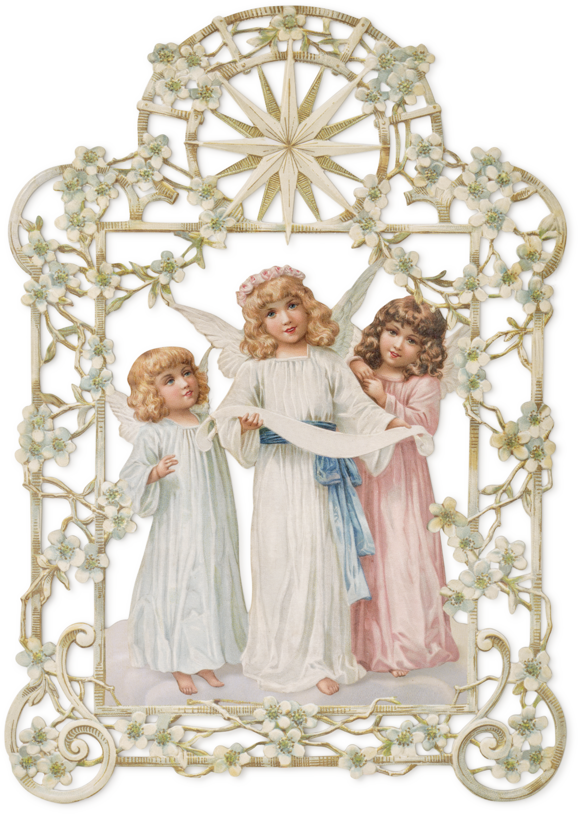 Beautifully ornate and delicate embossed paper decorations to hang about the house, at window lintels, or wherever.  It may be obvious that we are totally partial to religious Kitsch, and in this spirit we hope you will appreciate these traditional holiday accessories.
