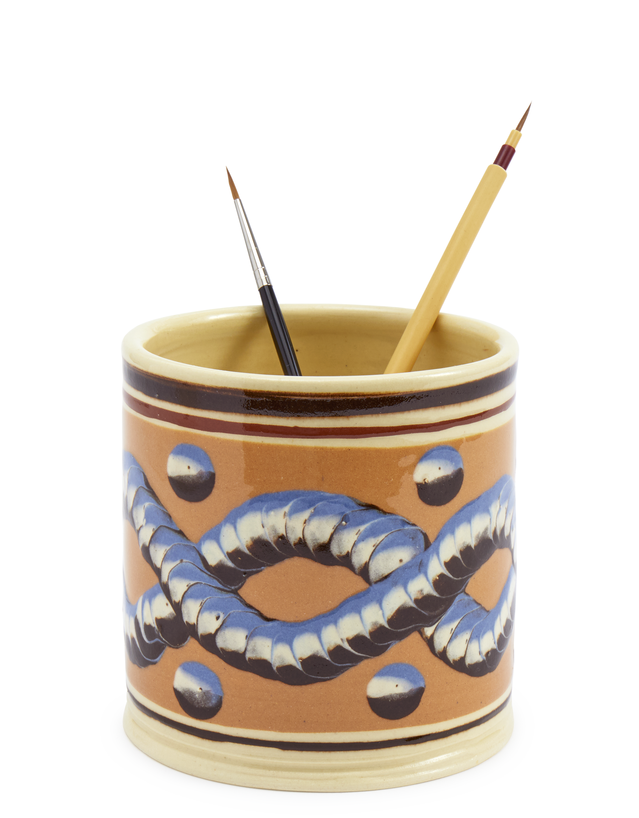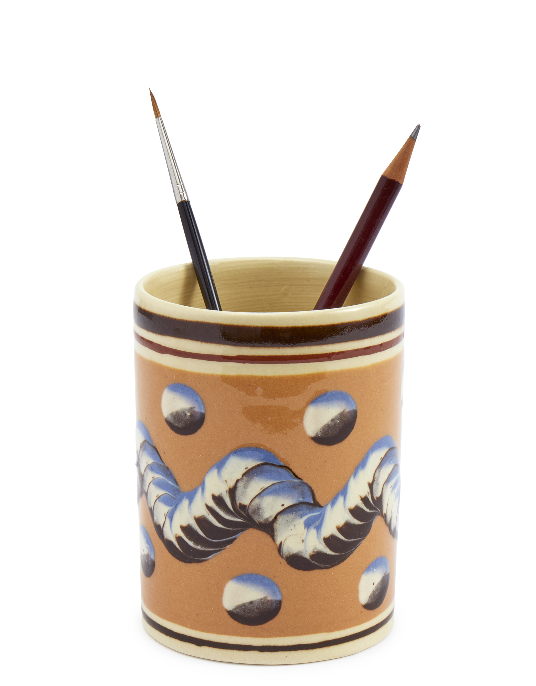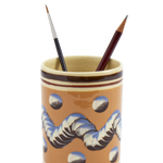 Persimmon Mochaware Ceramic Pen Pot, 'Earth Worm'