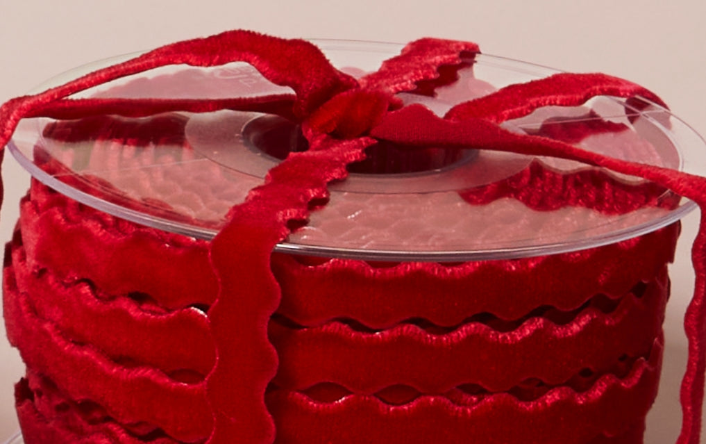 So, to remedy one of life's little miseries we are offering a generous 20m (that's a lot of ribbon) of premium quality Swiss made velvet scalloped ribbon. This luxurious trim will spruce up the dullest of wrapping paper.