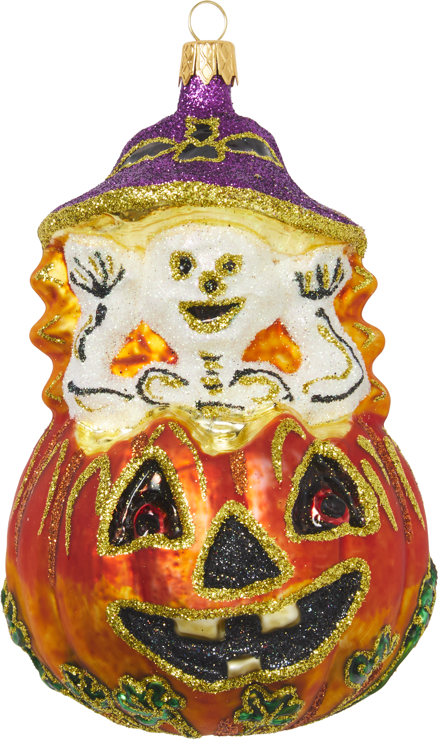 Pumpkin with Skeleton Glass Ornament
