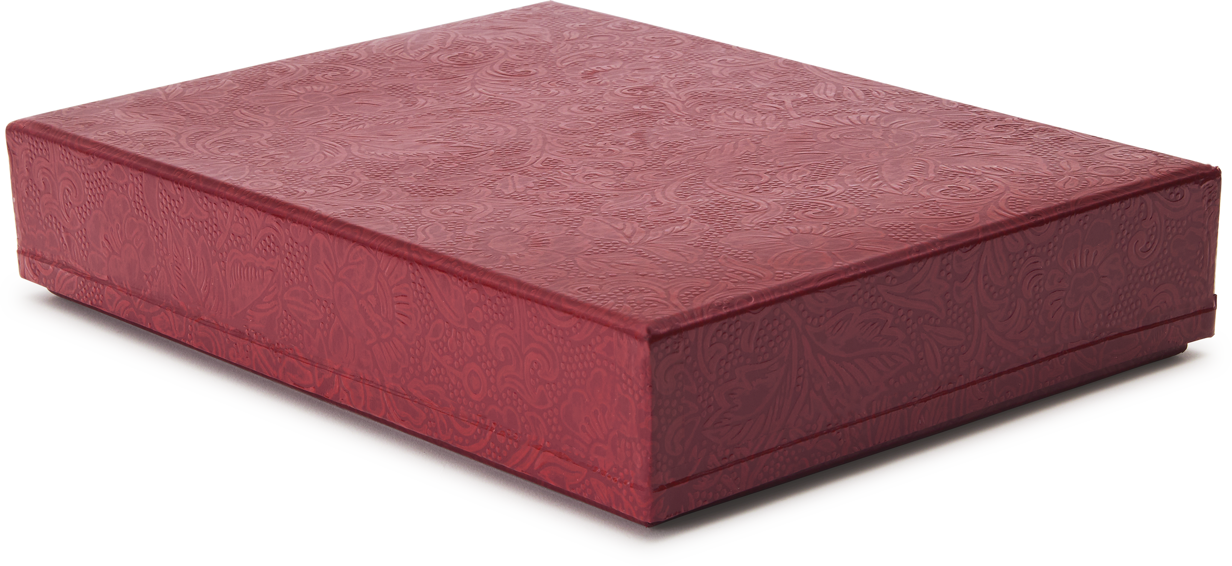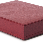 A box that might have sat quietly in an Ozu interior, its embossed paper surface and subdued sheen recalling mid-century Japan. Lined in deep red floral mock-patent leather-textured paper, it offers an elegant place to keep papers, photographs, and other small mementoes — or to present a gift with quiet refinement. Handmade in Japan.