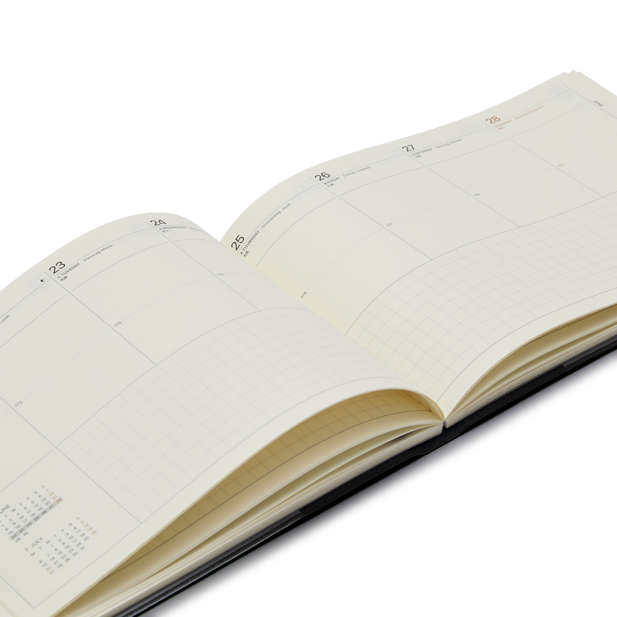 A new addition to our diary range, we have found this compact landscape diary to possess the qualities we know make a good diary - mainly a very clean and minimal design and layout which allows for plenty of note taking alongside planning and organising. Made to sit below your keyboard and help you view your whole work week effortlessly, it features a Monday to Sunday weekly vertical layout.