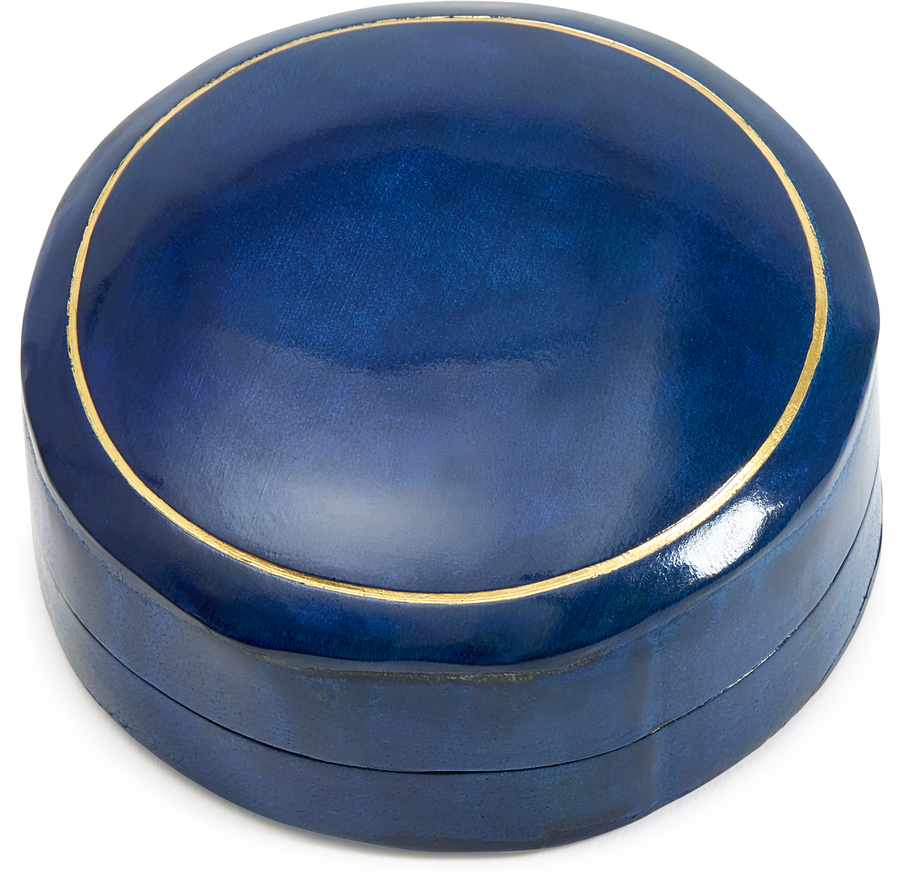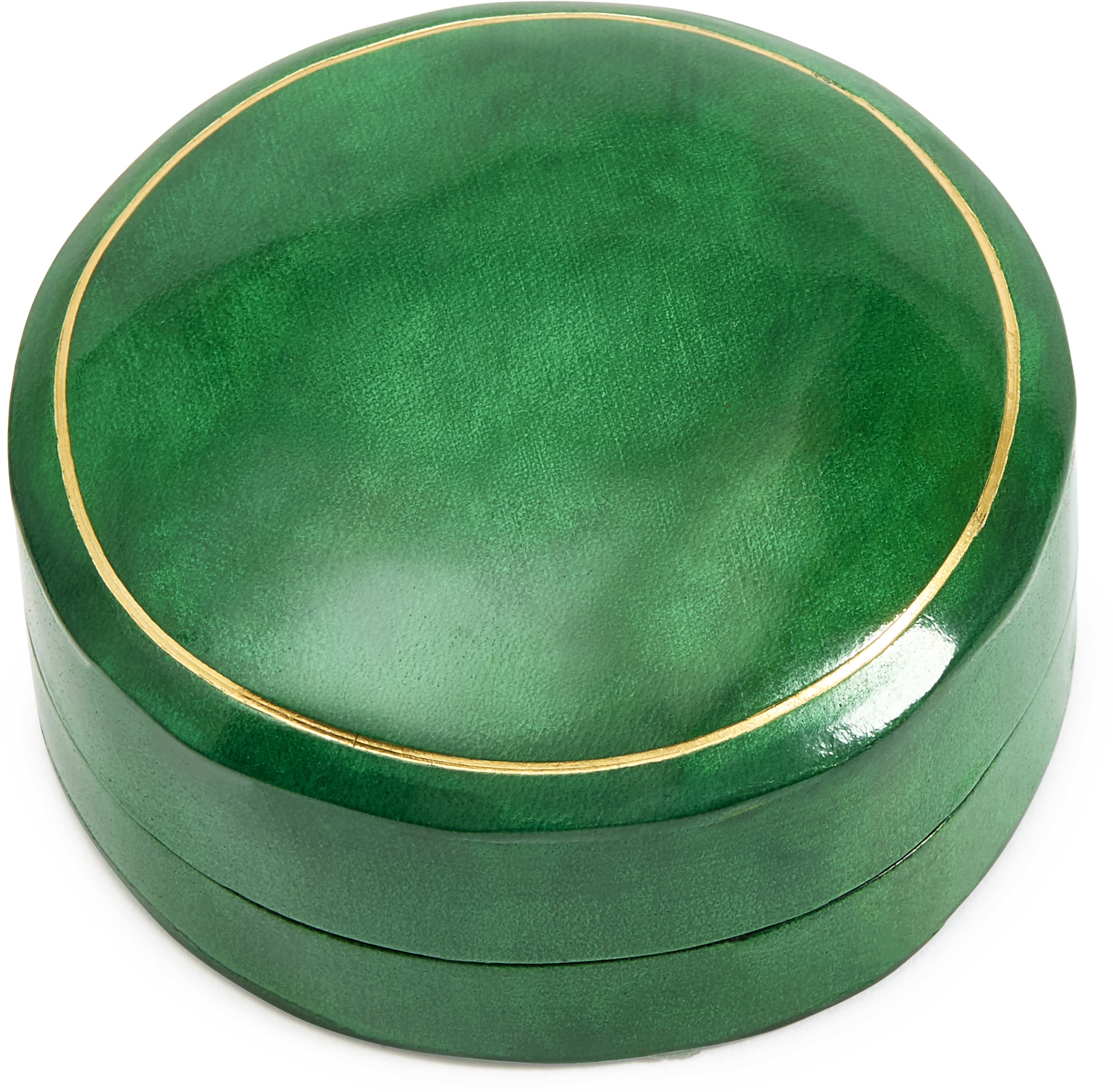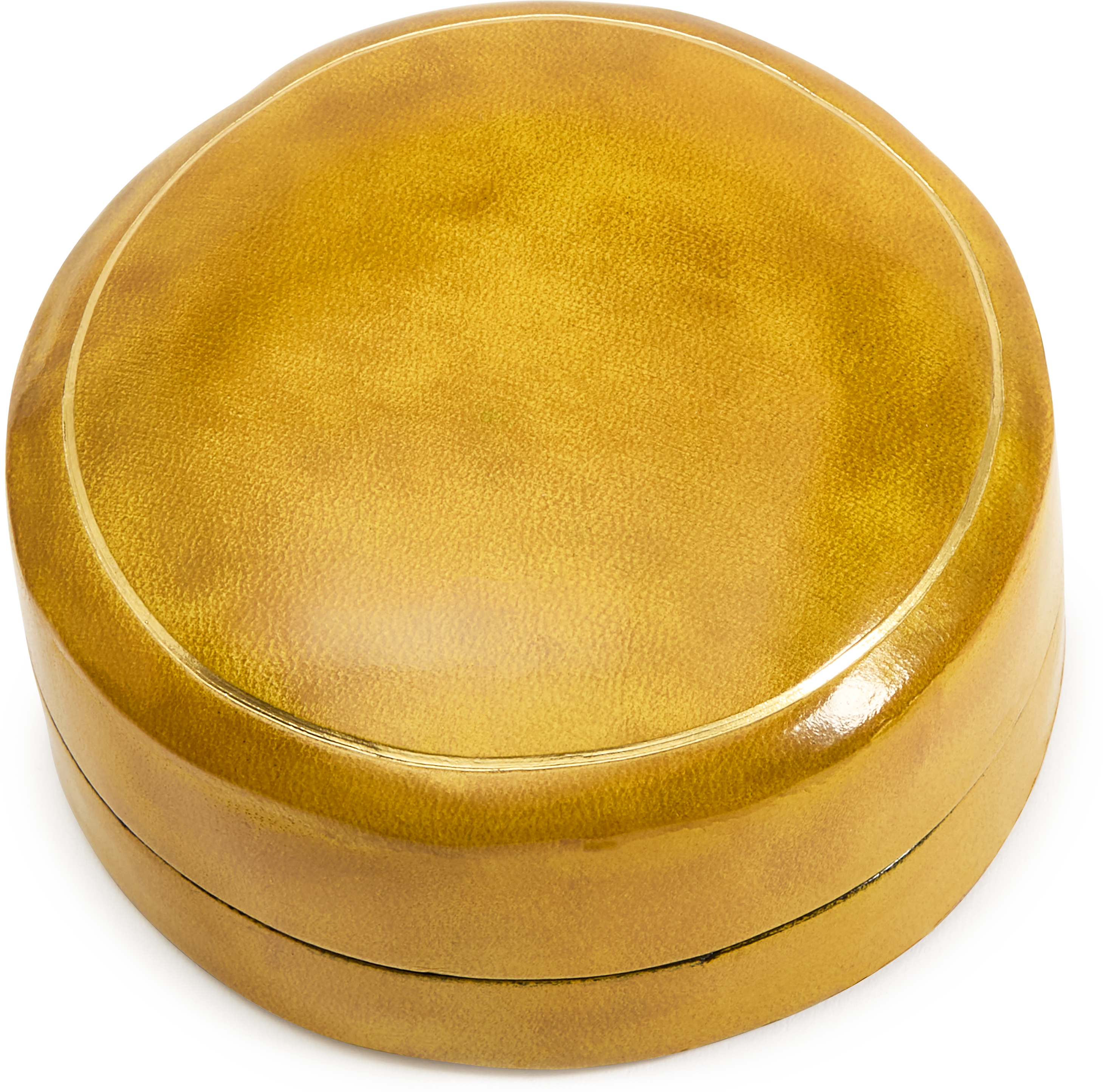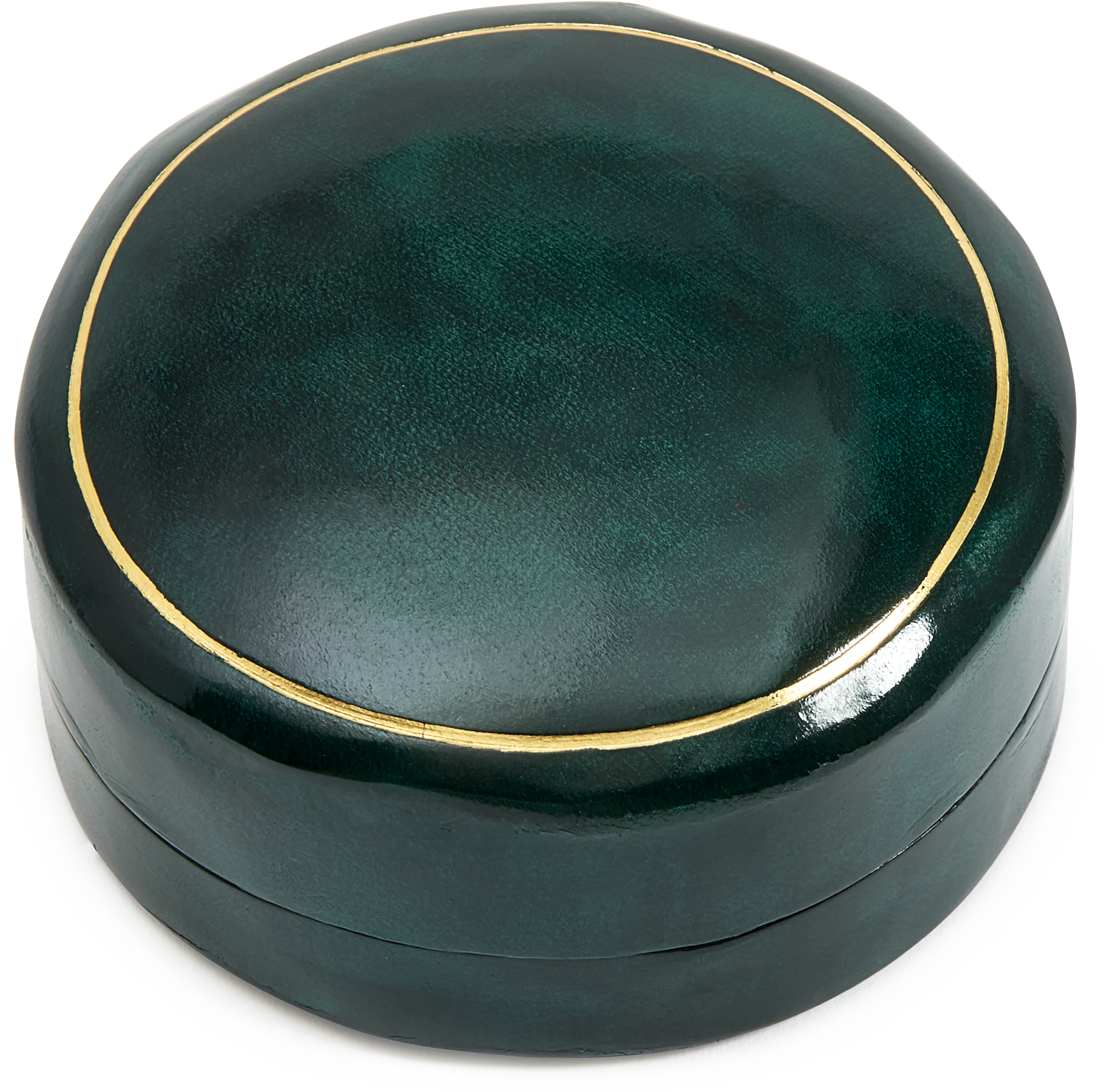 Enjoy these glossy Italian-made calf leather round trinket boxes in many colours.