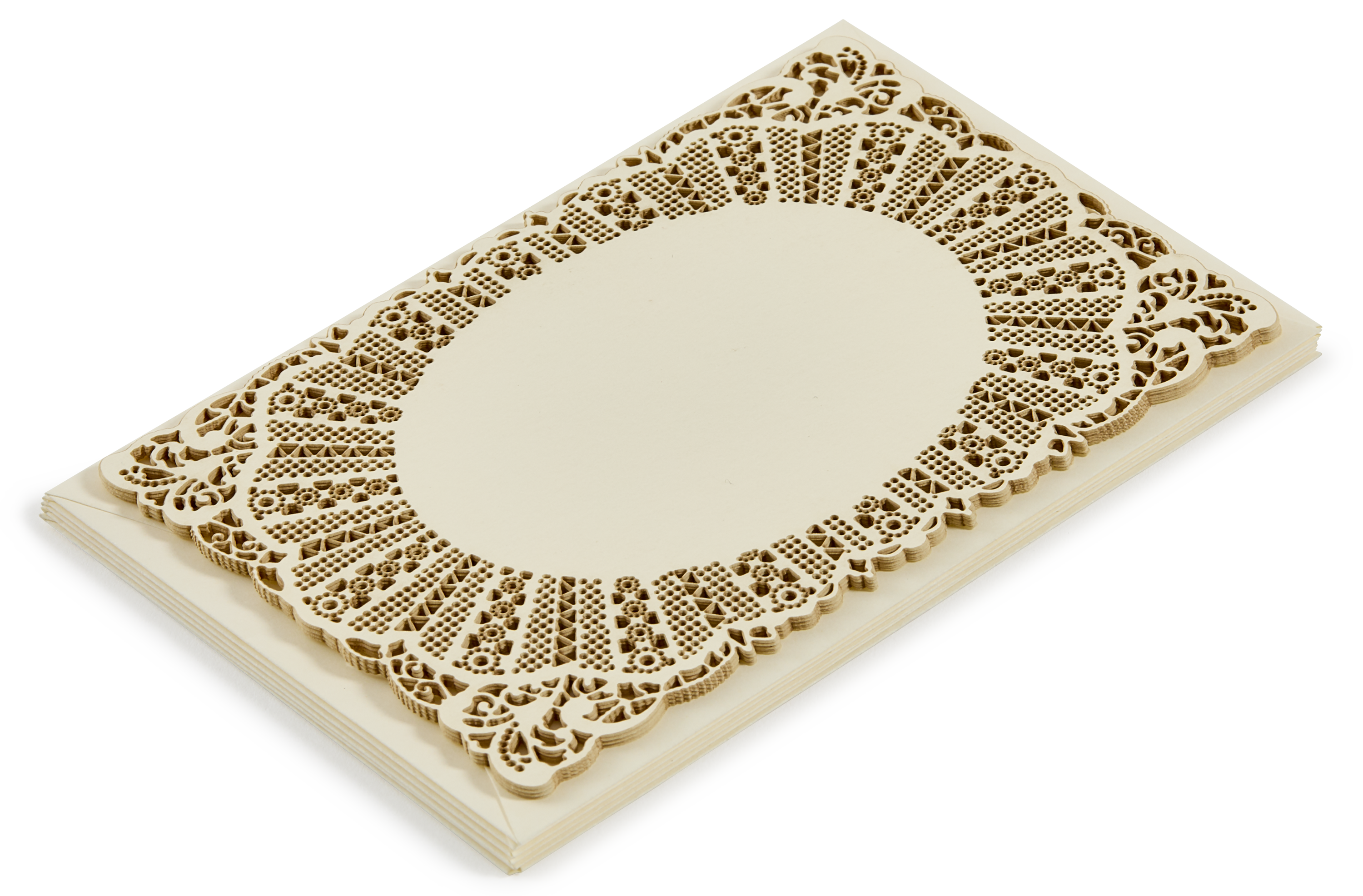 Versatile and beautifully cut French lace postcards which can be utilised for wedding purposes, as table setting cards, thank you notes, enclosure notelets, as a support for drawing and painting, to embellish a photograph, or whatever your heart desires - so long as it's doily themed.