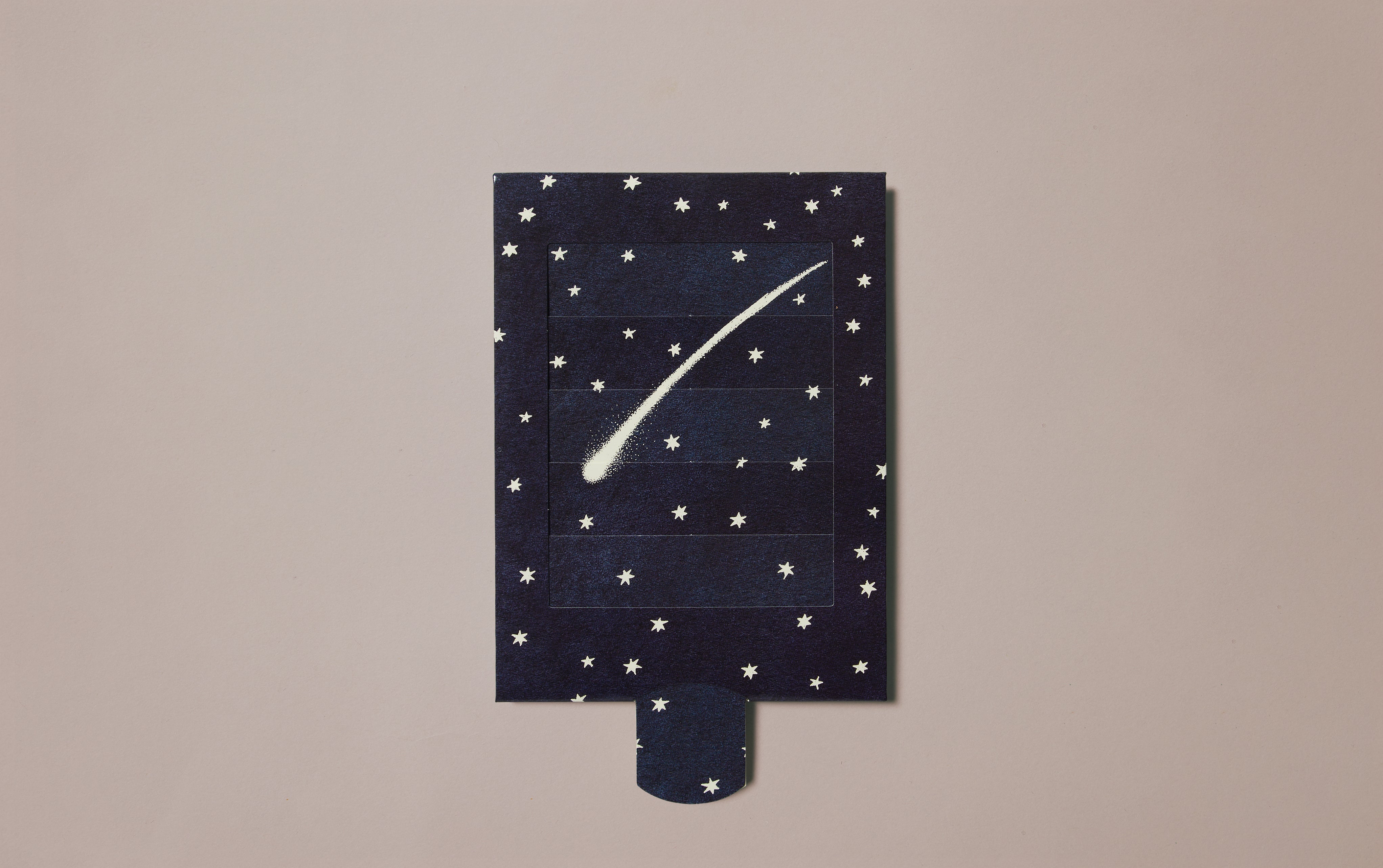 Make a wish and pull down on the tab of this "venetian blind" card to reveal a shooting star. Ideal for a special occasion like a promotion or birthday, this flat card is blank on the reverse to write your message.