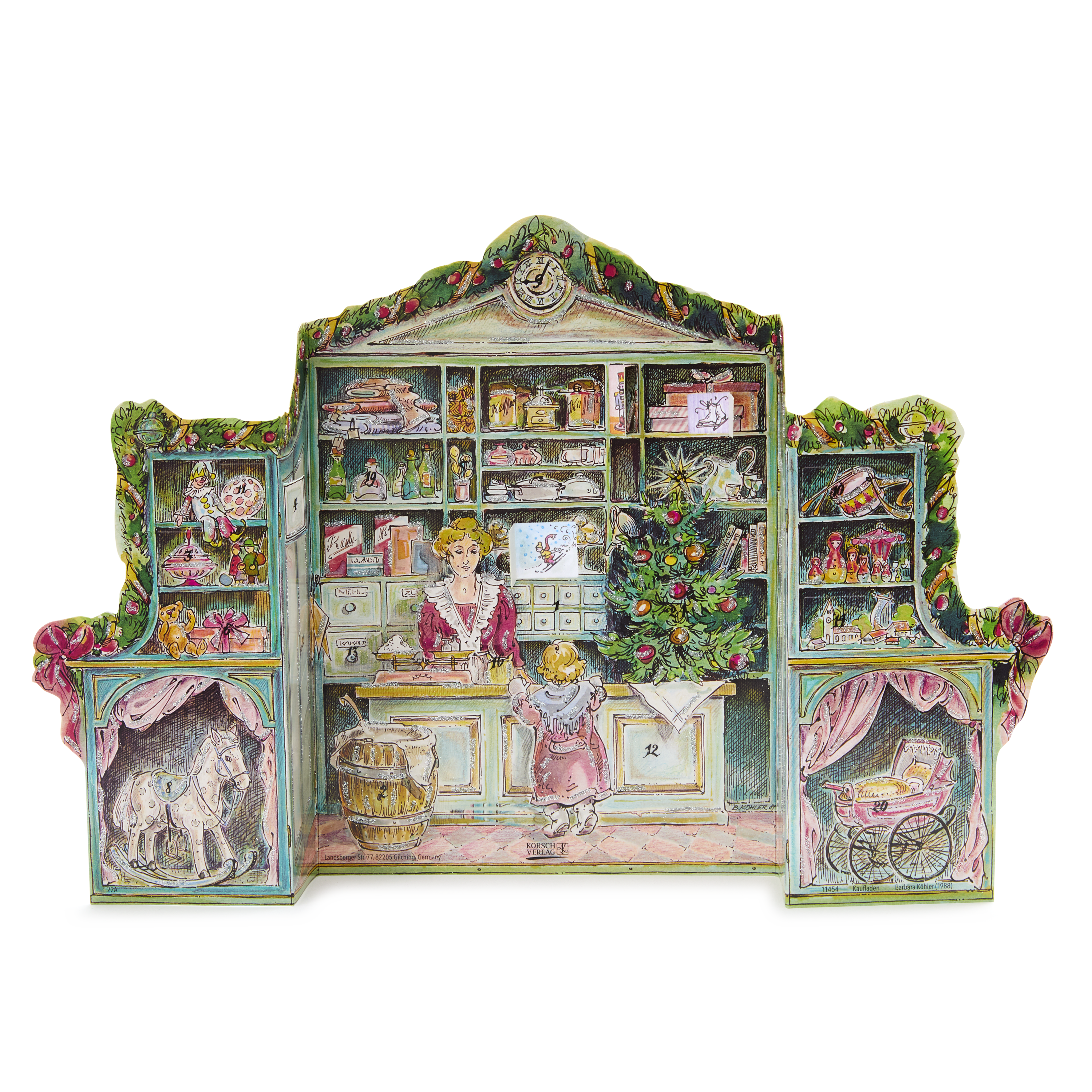 Forget expensive advent calendars flogging perfume miniatures and go back to the basics. Play shopkeeper for the holidays, and reveal each day something from the shop display in this charming illustration from 1988.