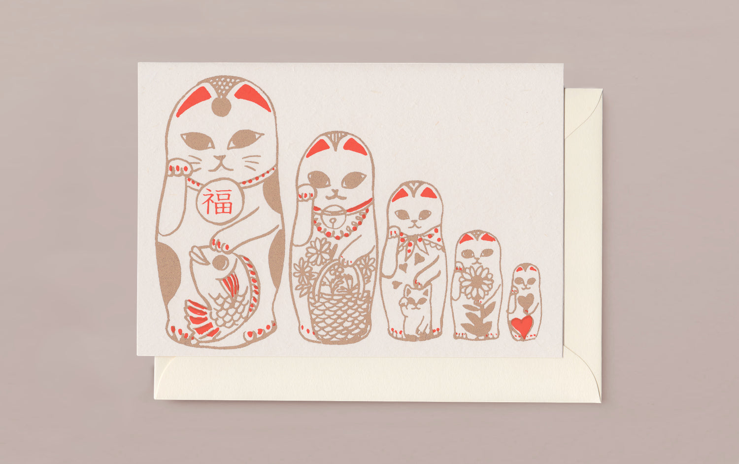 If cuteness and flowery illustration is something you can embrace, then this card should be right up your street. Hand-printed by silk screen technique, this card is highly tactile both matte and velvety-soft, to match the quaint and expressive emotion depicted.