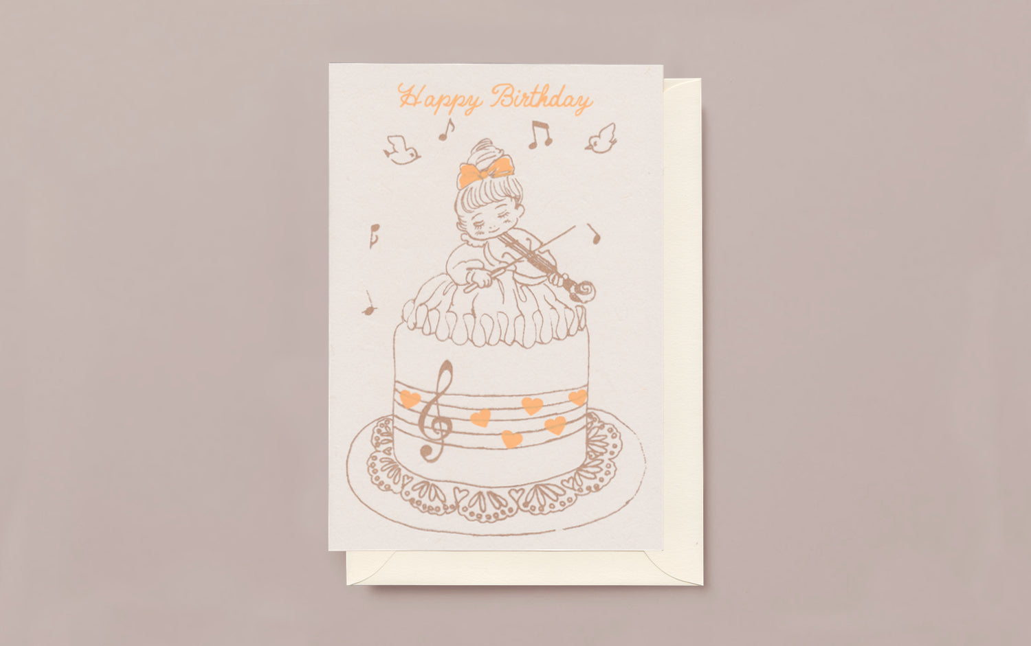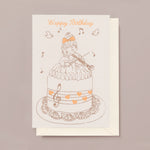 Silk Screen Printed Greeting Card, Musical Birthday Cake