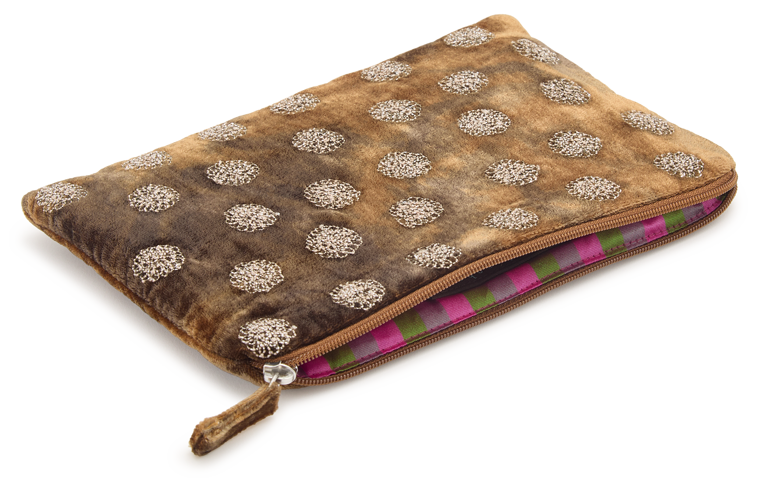 Silk Velvet Embroidered Pouch, Old Copper Medallion
