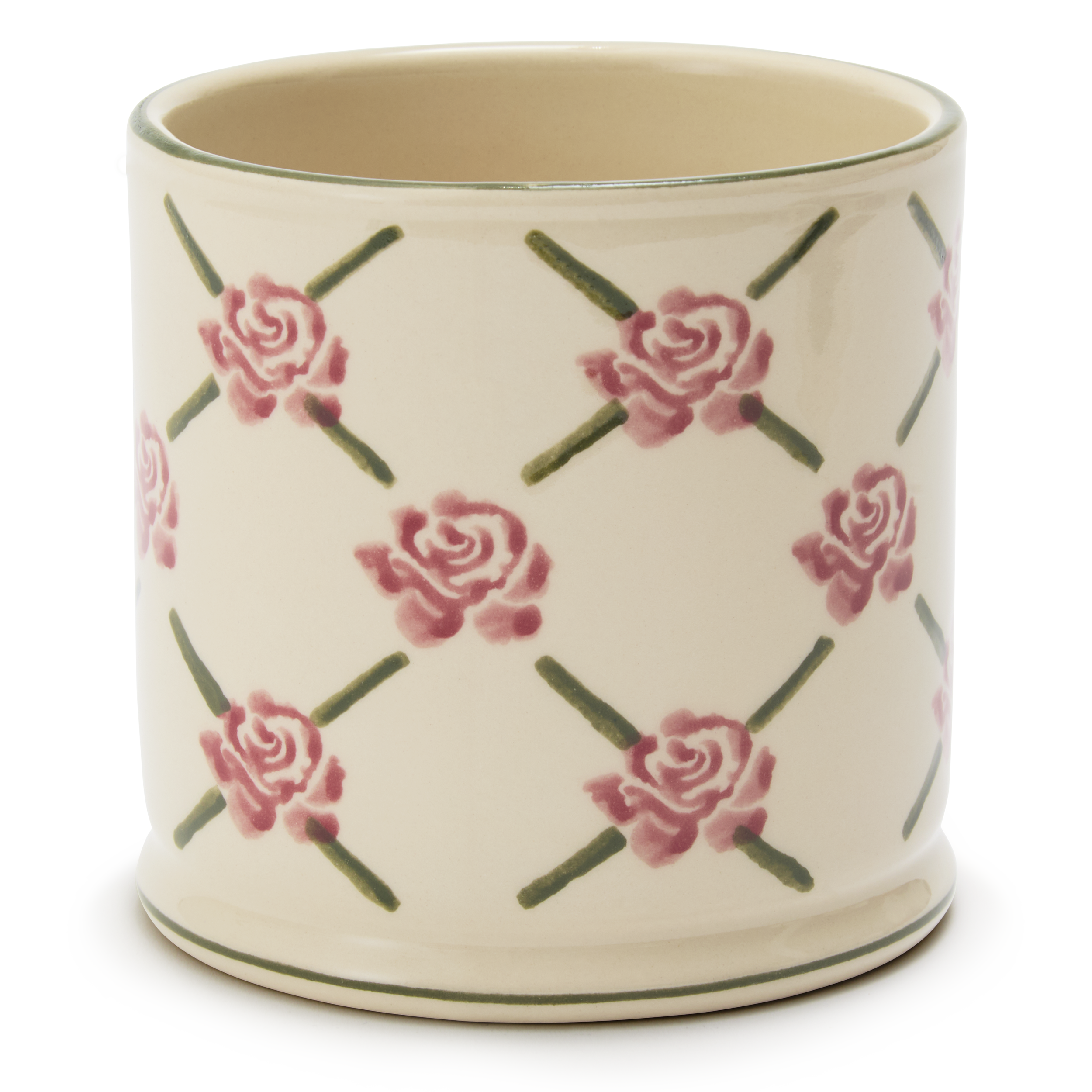 Spongeware Large Ceramic Pen Pot, Rose Trellis