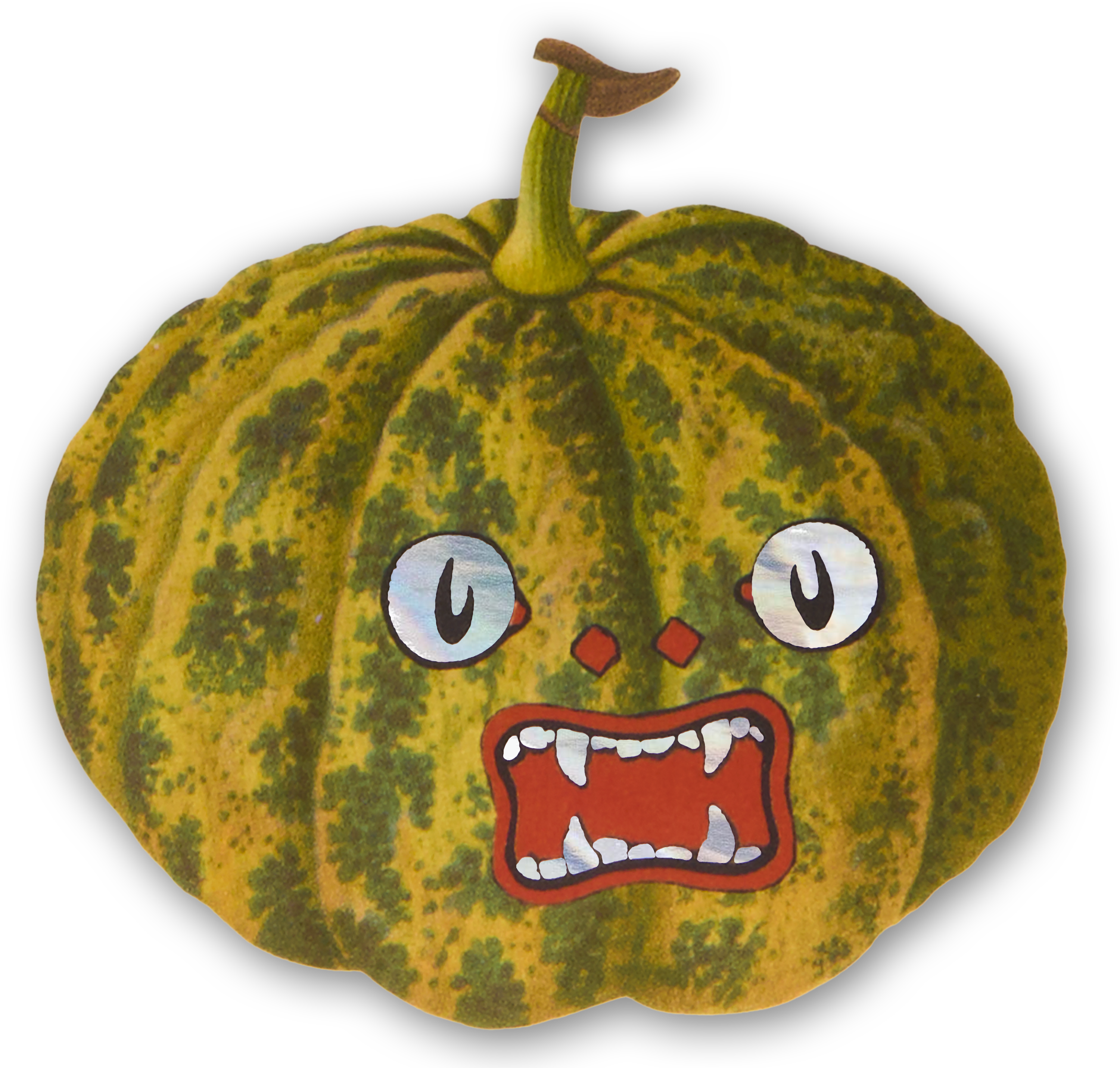 Enjoy this new collection of spooky leaves and vegetables with holographic faces!