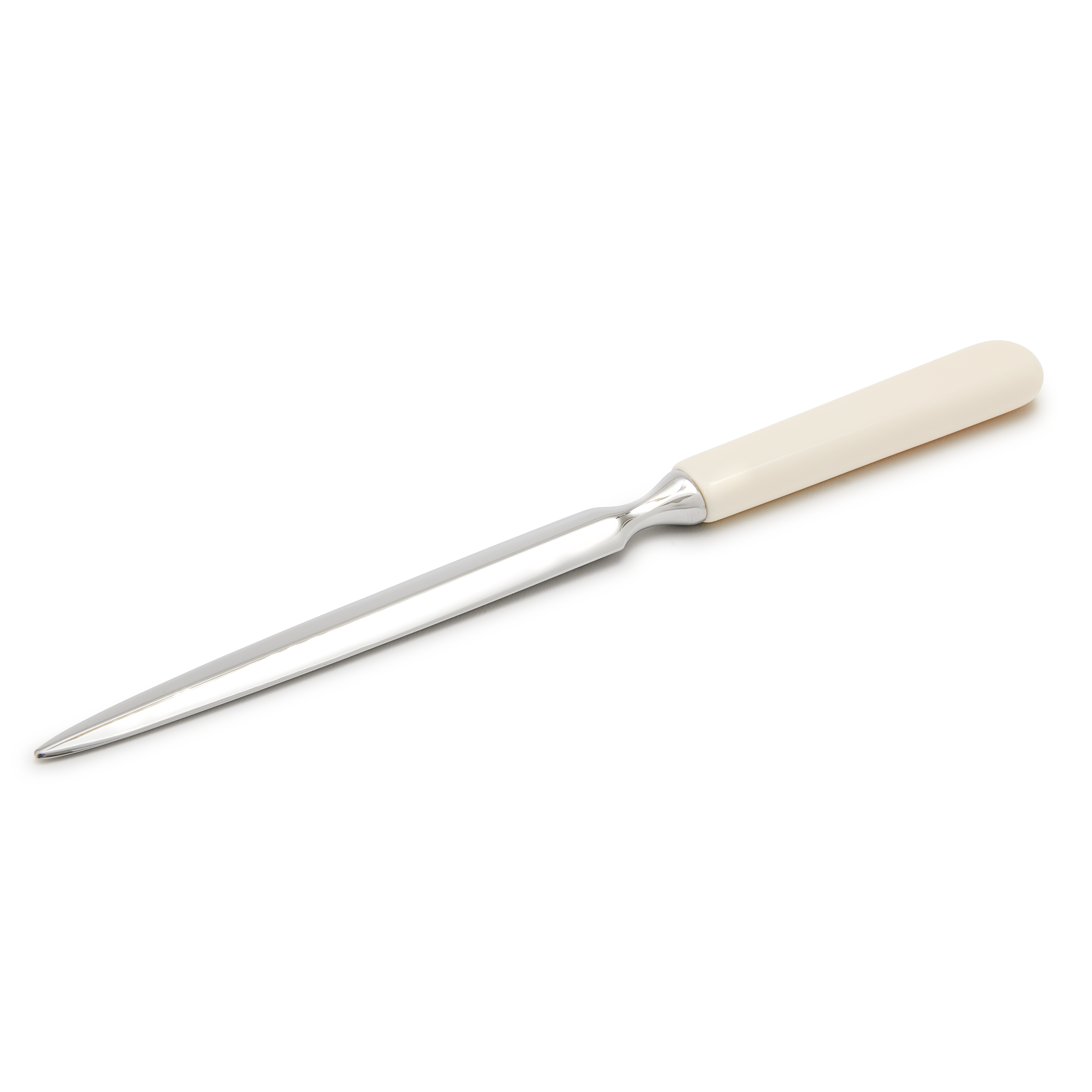 Produced by Tricketts of Sheffield, a long-established family workshop known for its precision metalwork. Each opener is cold-forged from stainless steel for strength and longevity, then polished to a smooth, reflective finish. The faux bone handle is shaped for comfort in use, giving good balance without unnecessary weight.