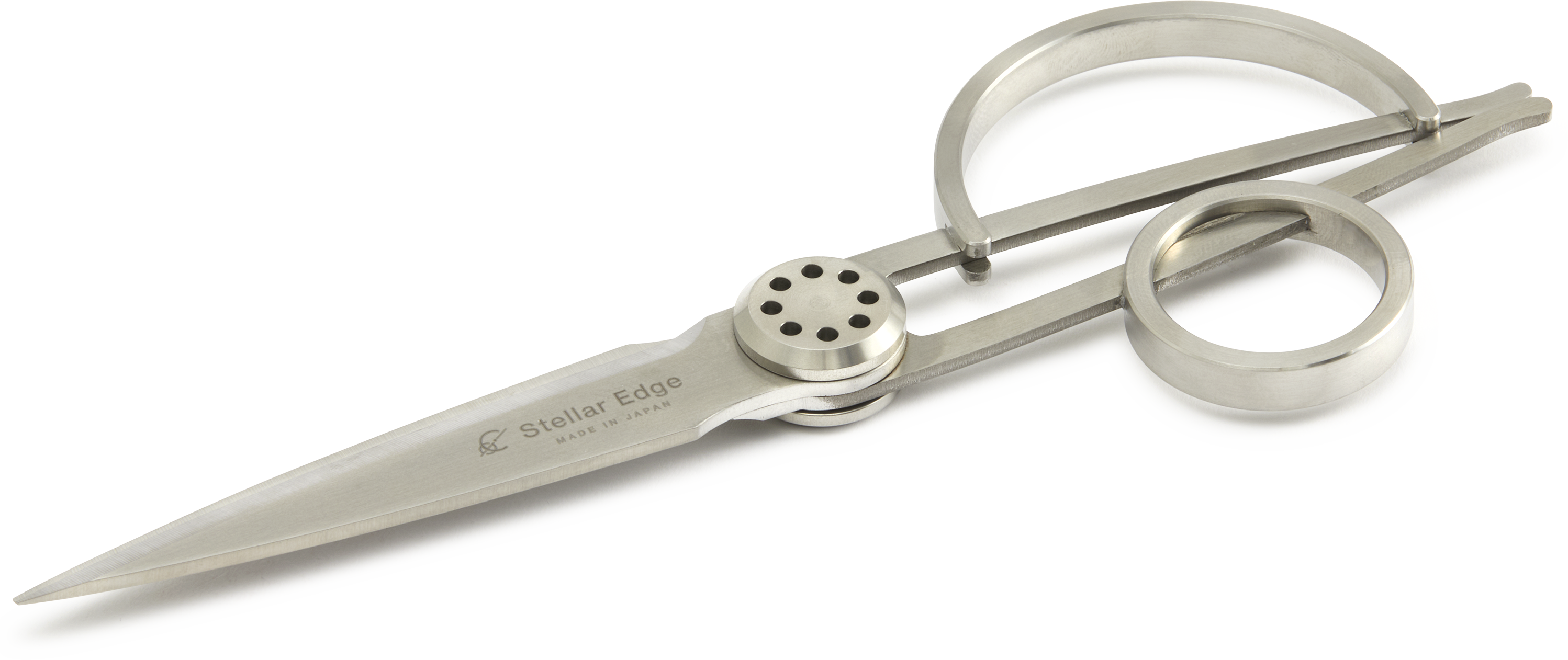 A striking architectural design combined with top-quality Japanese stainless steel makes for a unique pair of scissors, celebrating the connection between form and function. Despite their unusually asymmetrical handles, the scissors have been designed with great consideration of ergonomic comfort.