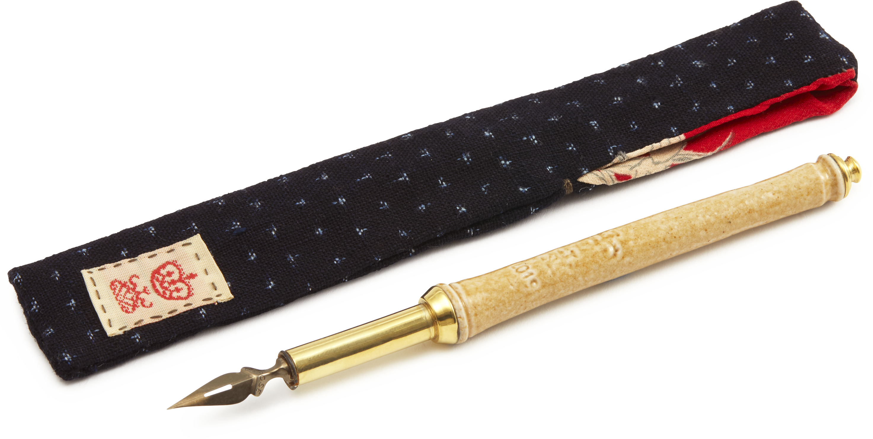 Produced as part of an ongoing collaboration between Choosing Keeping and British salt glaze potter Steve Harrison, following the 2020 exhibition 'Desk', this luxury dip pen, was produced exclusively for the shop, as part of an accoutrement of atmospheric accessories imagined for his fantasy desk. Use it with your favourite bottled ink both for drawing and writing, it can be fitted with any standard nib and is supplied with one Japanese G-nib.