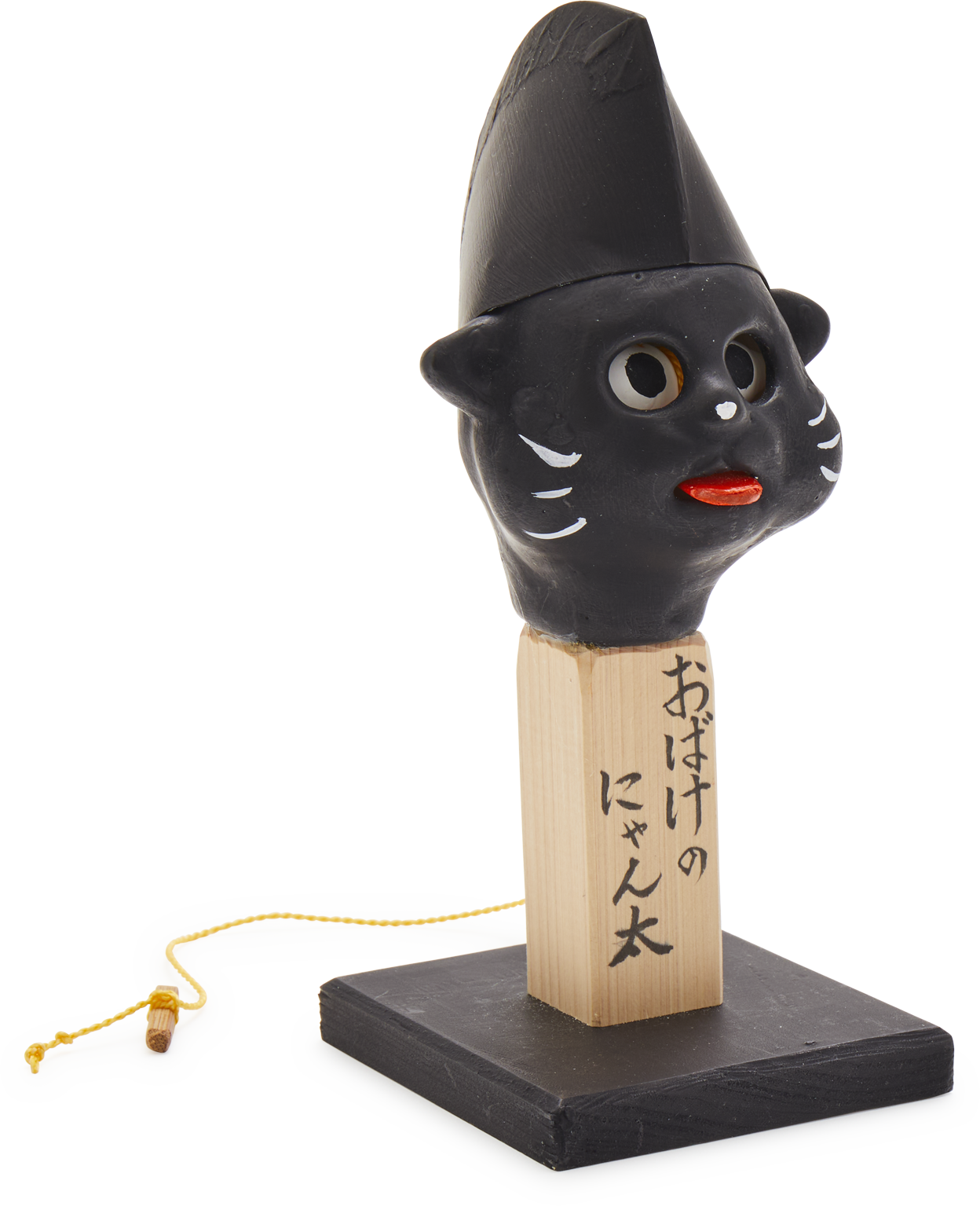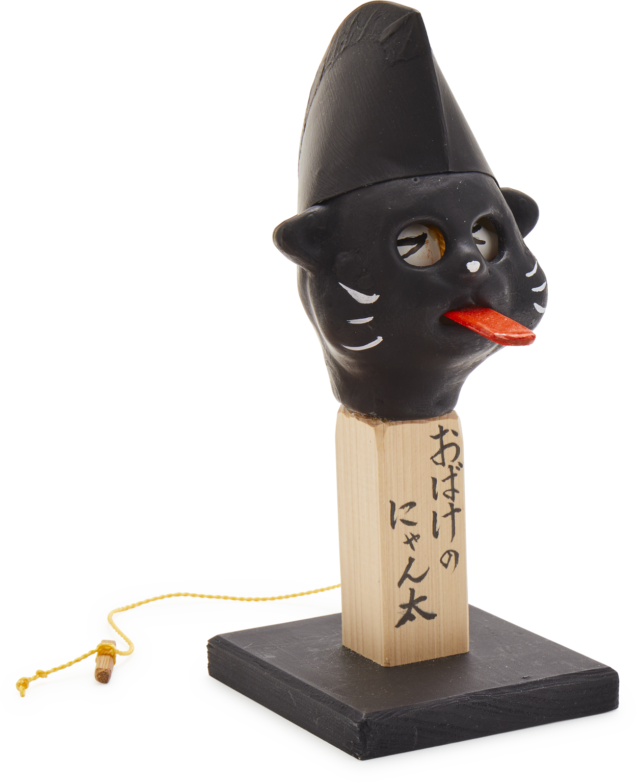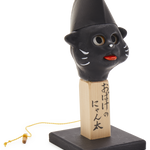 Traditionally supposed to ward off evil spirits, this peculiar doll rolls its eyes back and sticks its tongue out when the string is pulled. Taking advantage of the recent cat boom, the artists have created "Ghost Nyanta" using the same technique and mechanism.